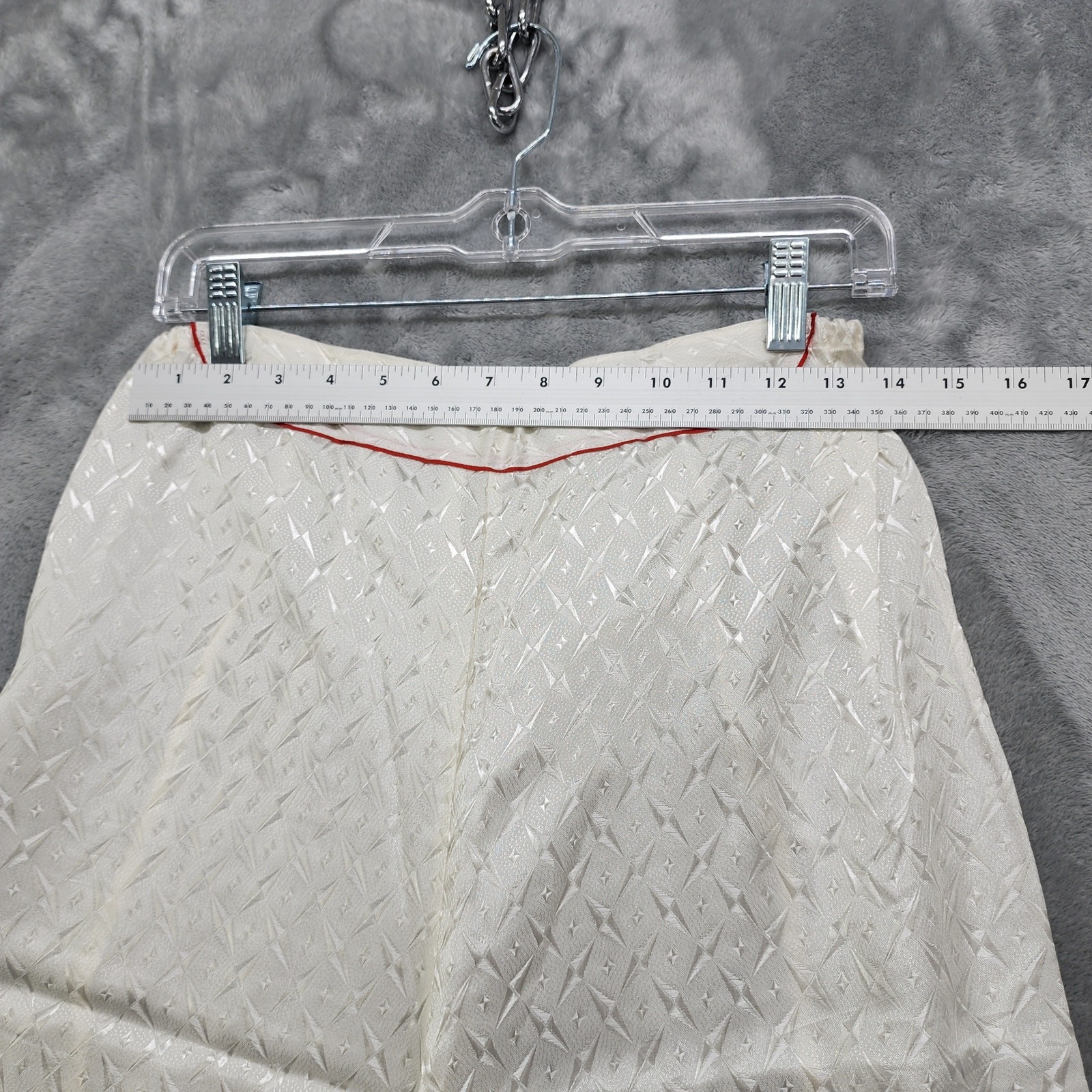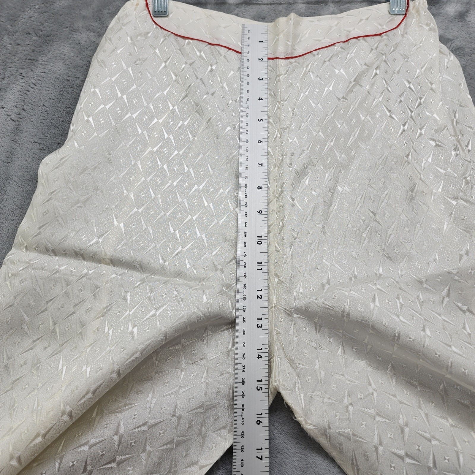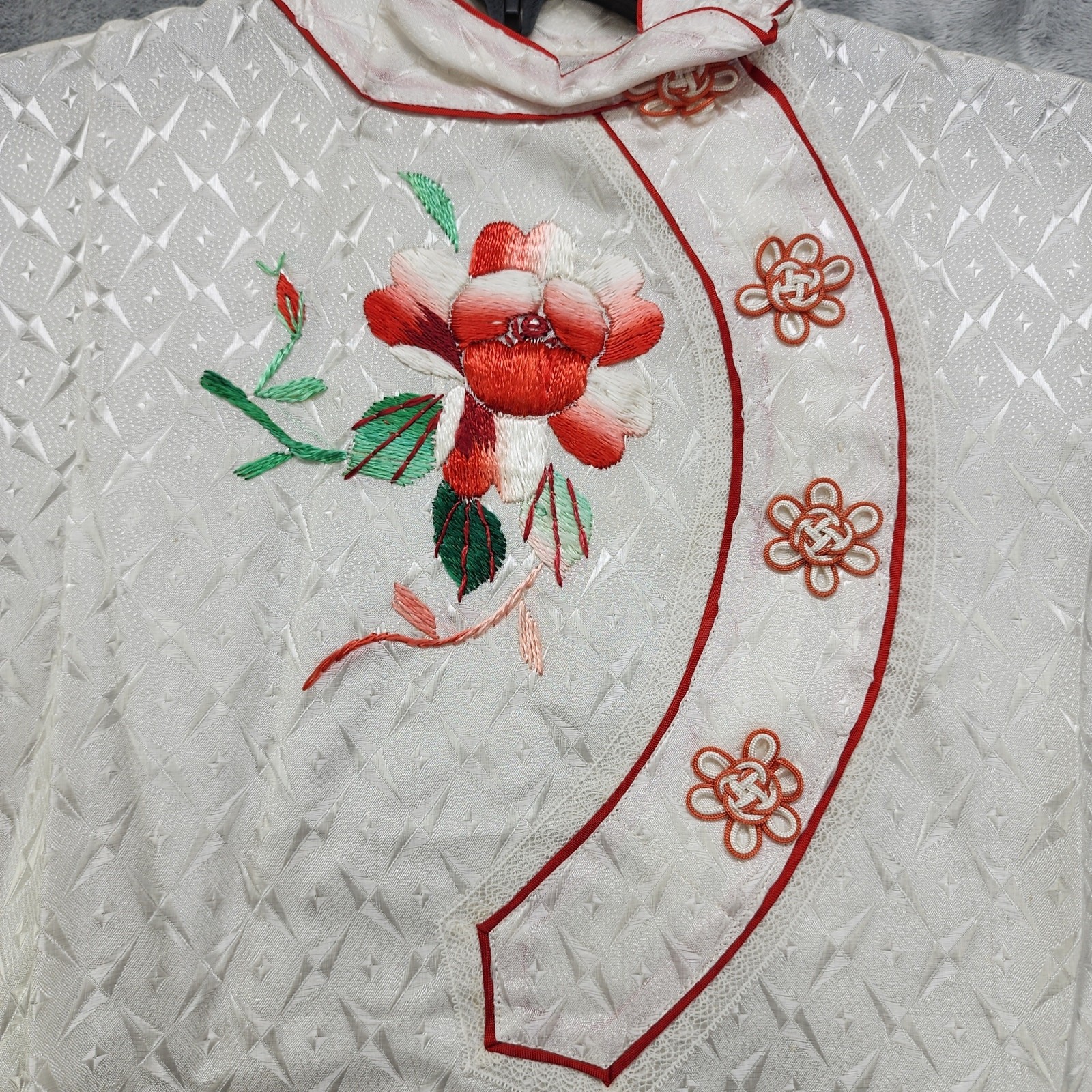 Vintage Asian Pajama Set Size M White Red Silky Satin Jacquard Embroidered Crop
