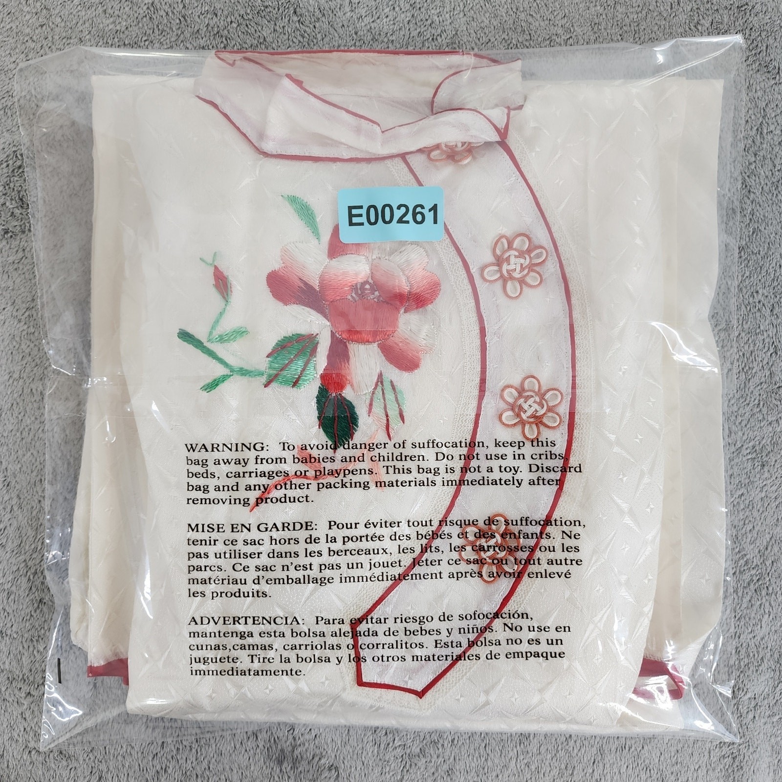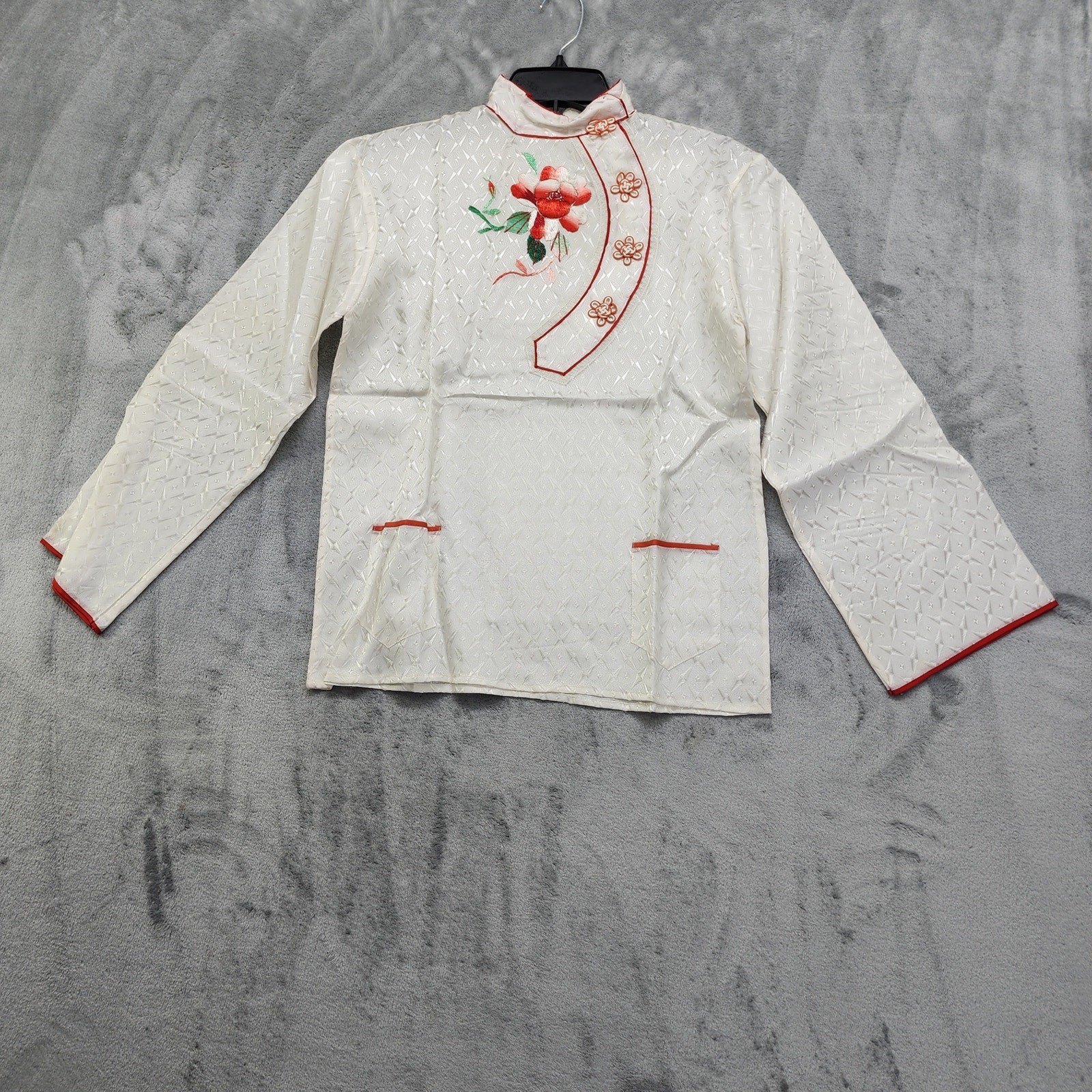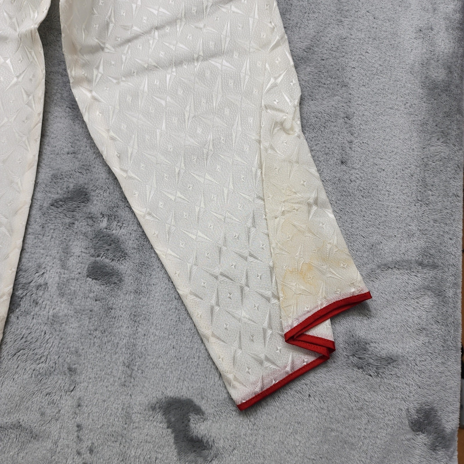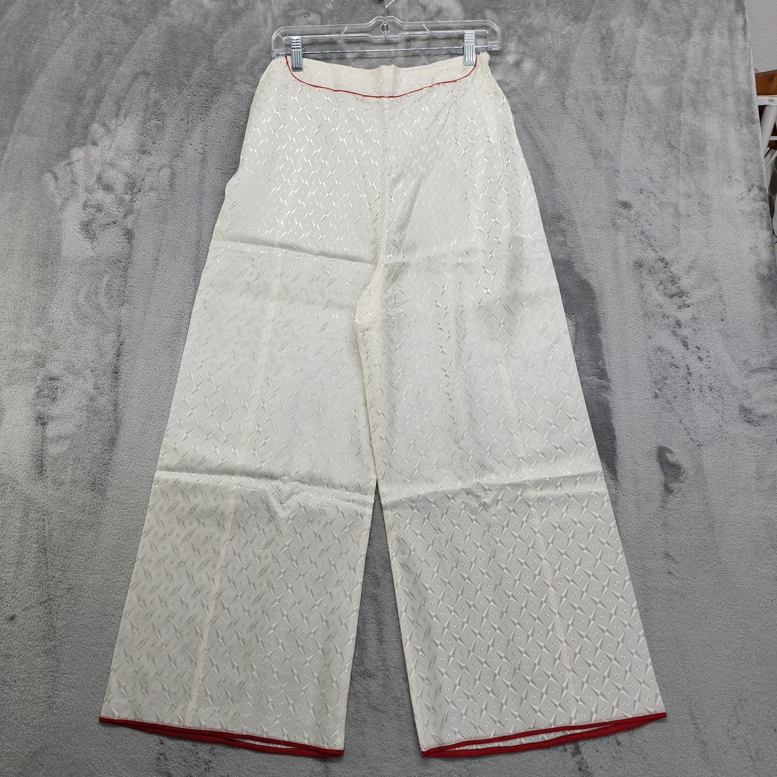 Vintage Asian Pajama Set Size M White Red Silky Satin Jacquard Embroidered Crop