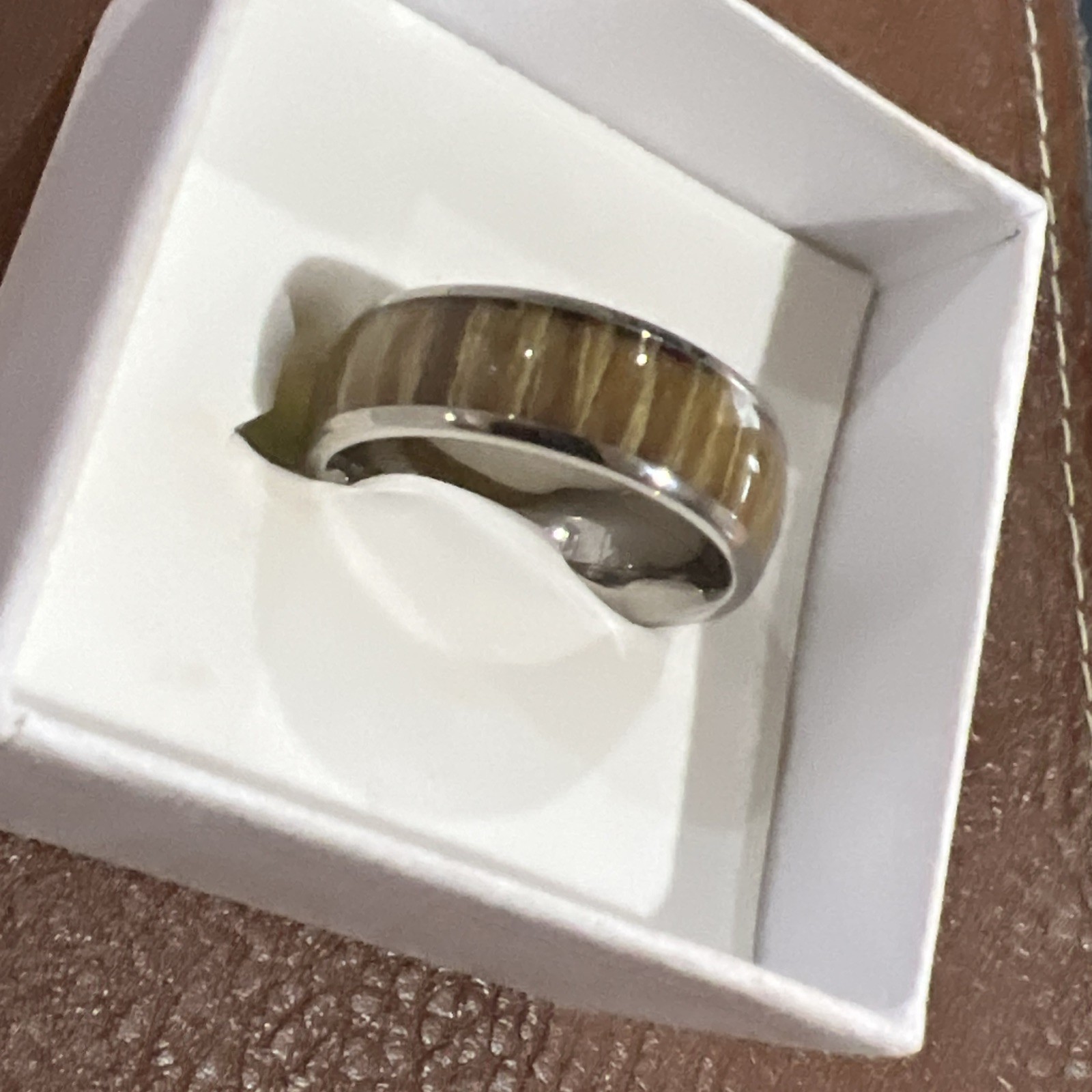 как выглядит Men s Titanium Wood Grain/Whiskey Barrel Inlay Ring/Wedding Band Size 11 фото