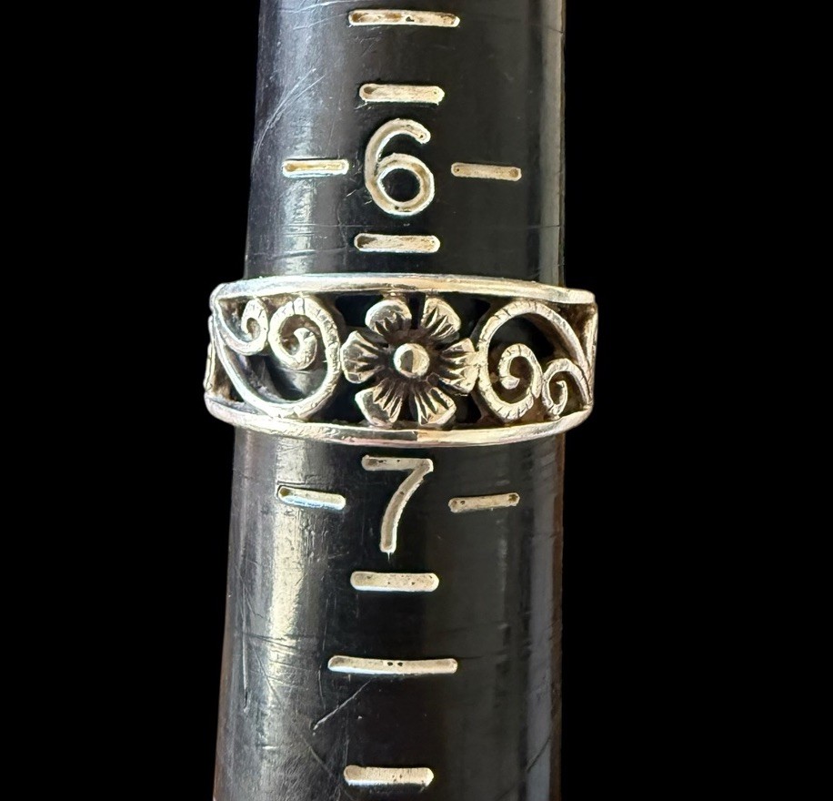 как выглядит Vintage Sterling Silver Sunflower Band Ring Size 6.5 Swirled Open Work фото
