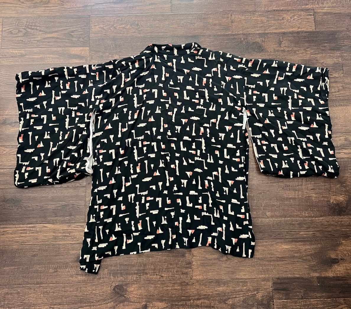 как выглядит Vintage Japanese Kimono Haori Jacket Silk Black All Over Print Lined Womens Mens фото