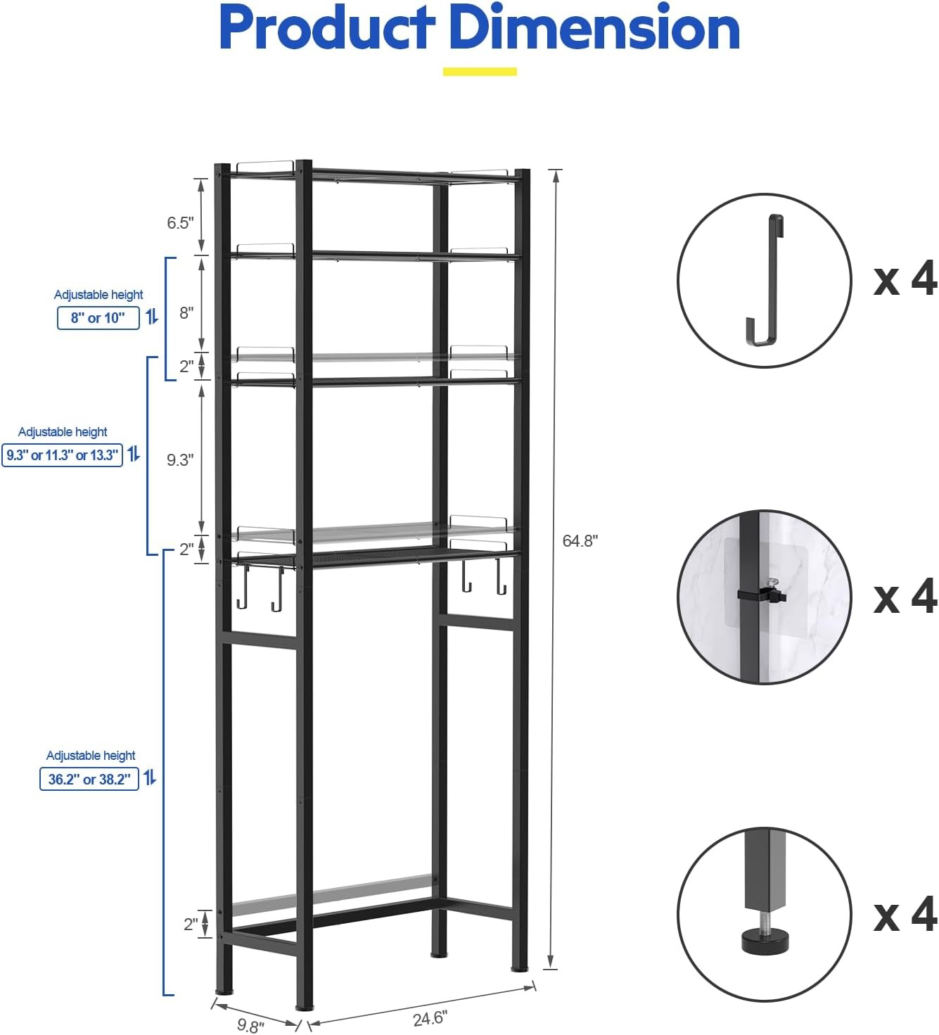 Over the Toilet Storage Shelf 4-Tier Freestanding Bathroom Organizer Brown