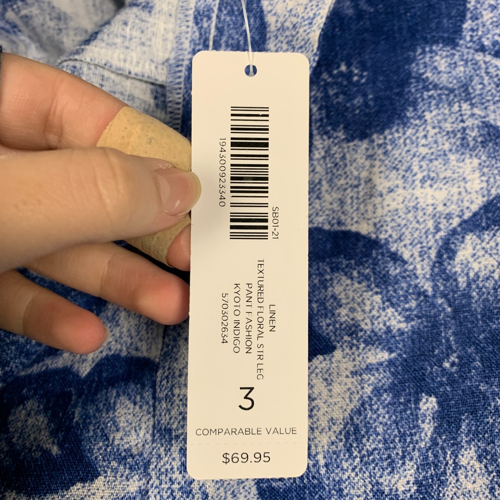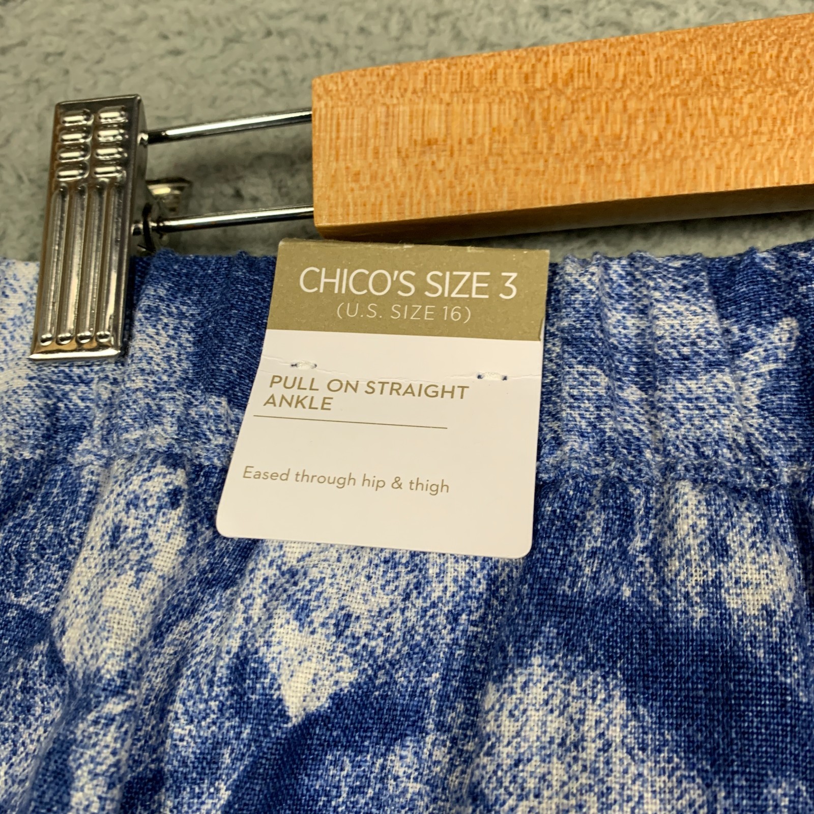 как выглядит NWT Chicos Ankle Pant Womens 3 XL Kyoto Indigo Linen Textured Floral 69 фото