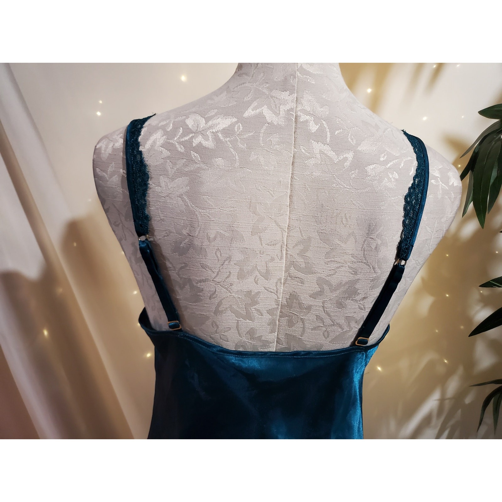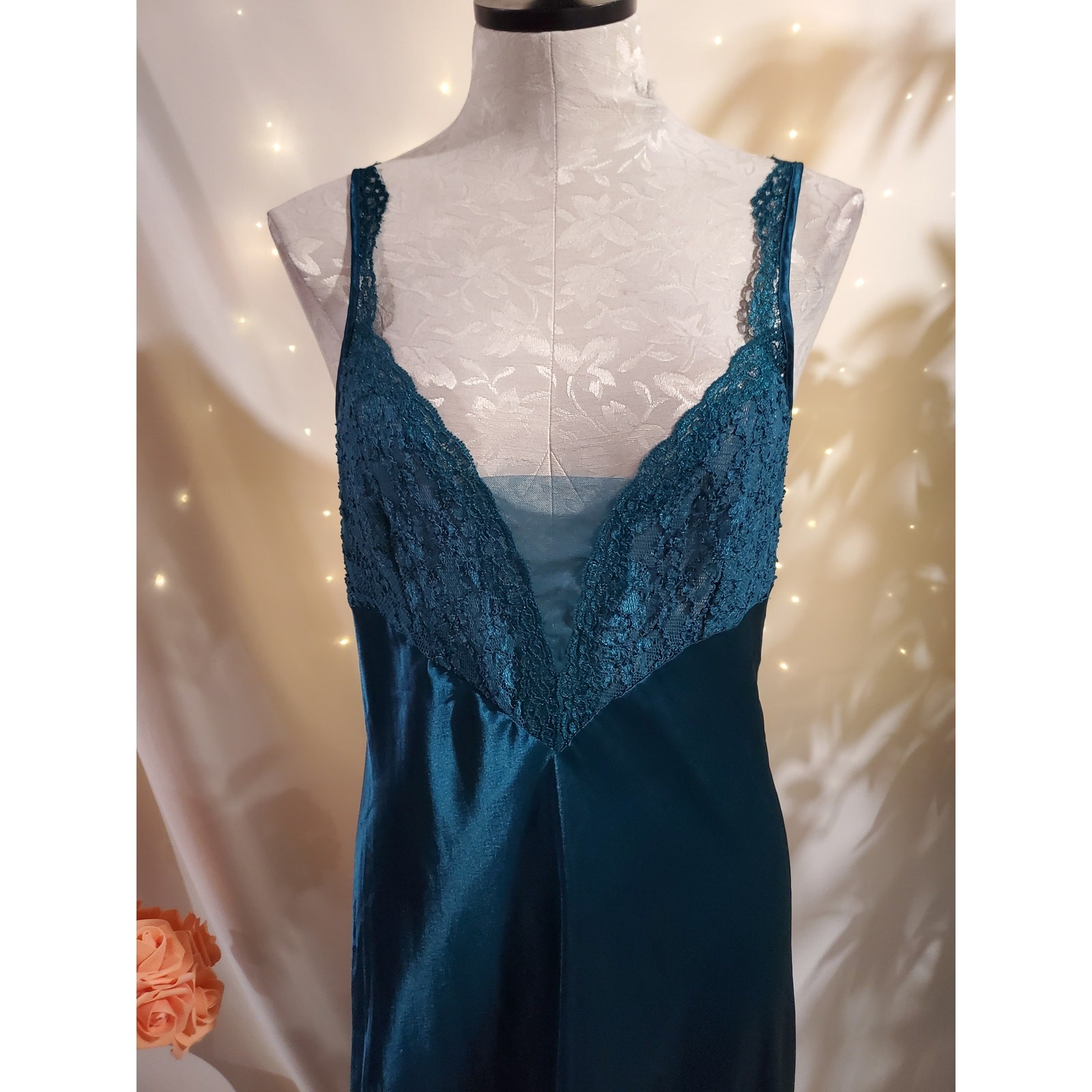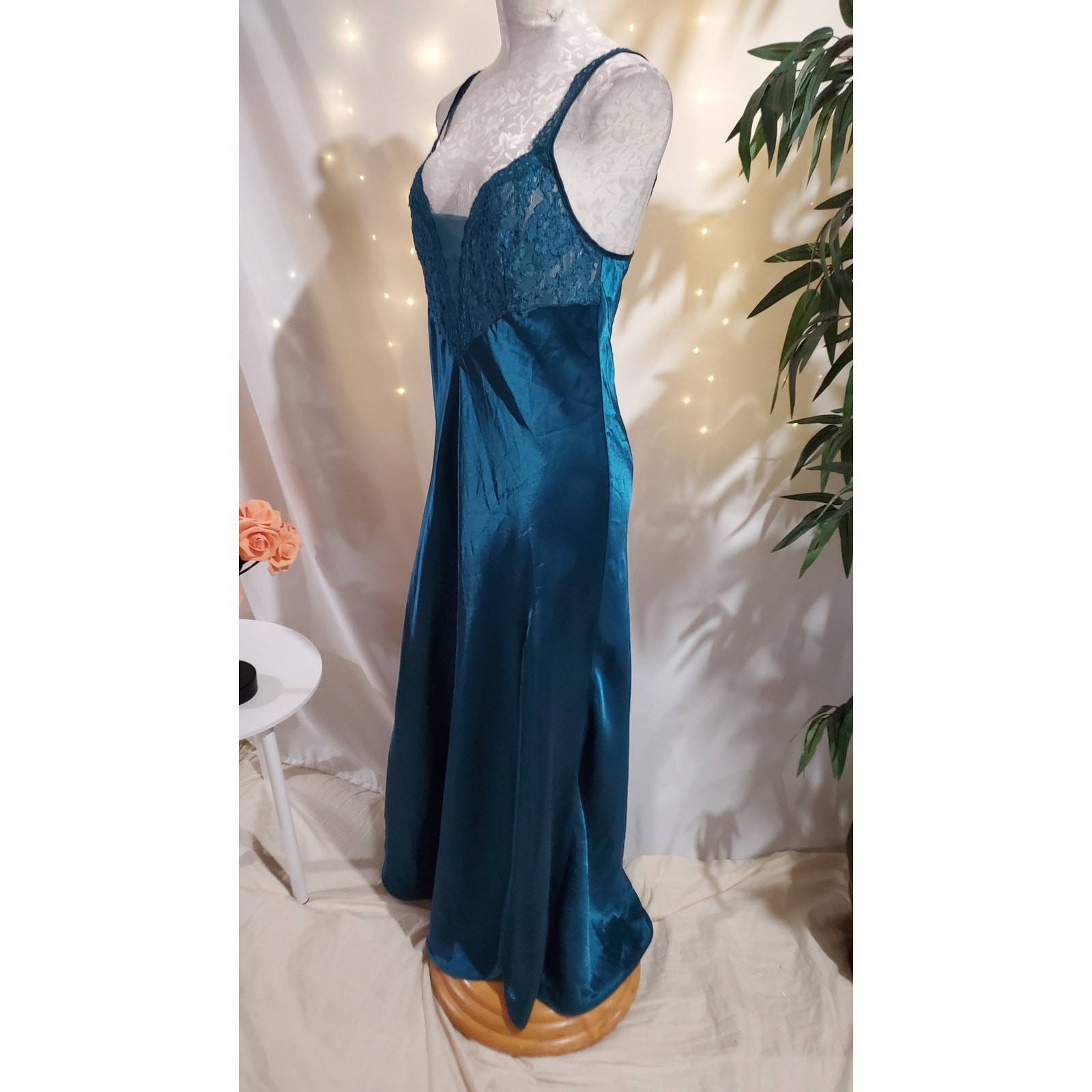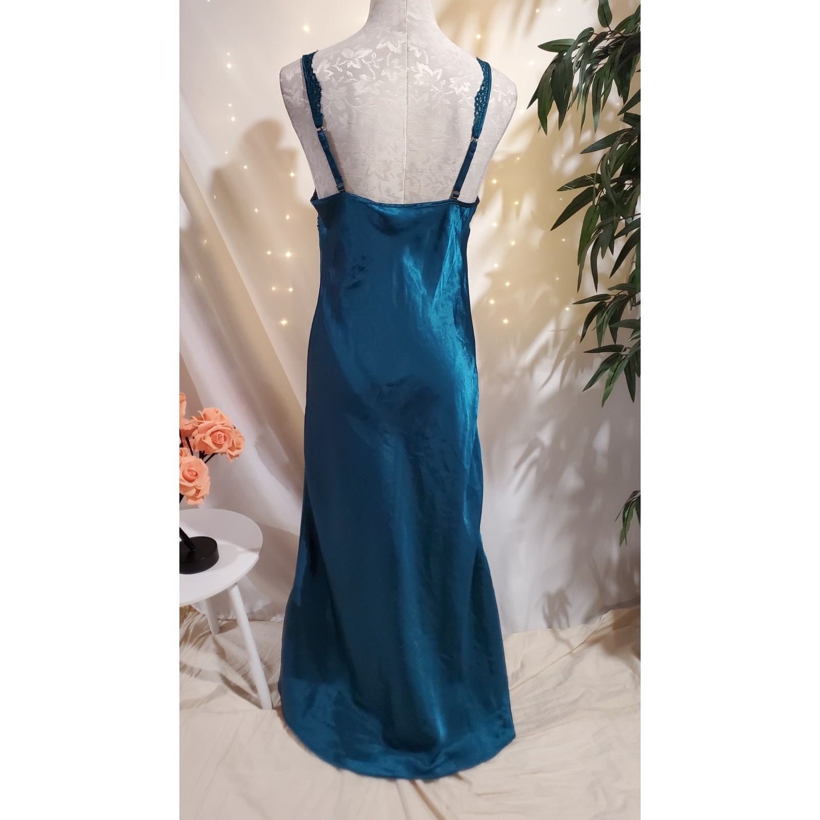 как выглядит Vtg Victorias Secret Gold Label Satin Lace Maxi Chemise Slip Dress Size M Blue фото