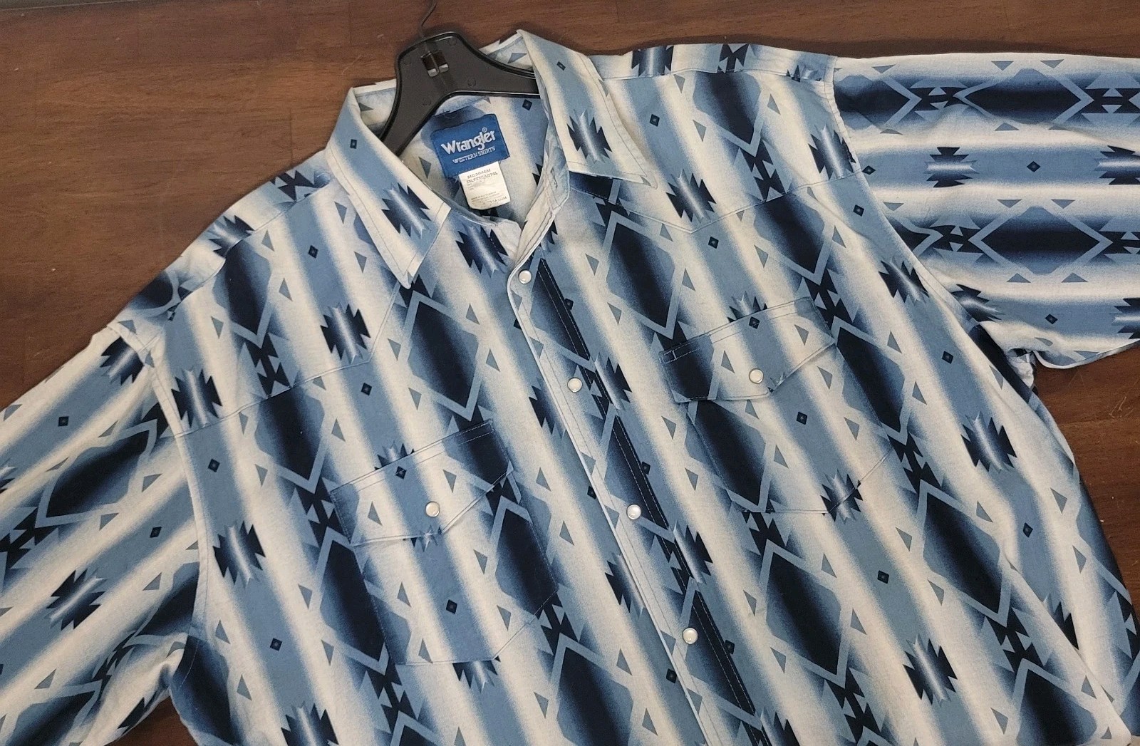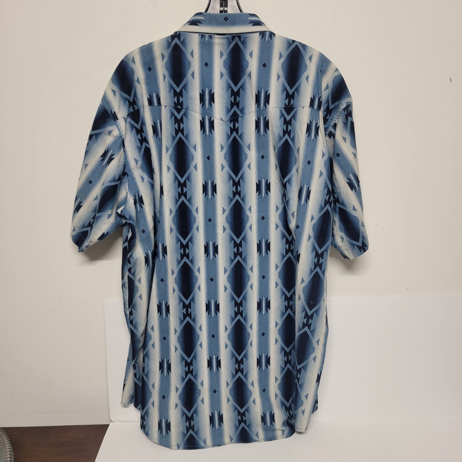 как выглядит Vtg Wrangler Western Shirt Mens Short Sleeve Aztec Stripe Pearl Snap Sz 2XL фото