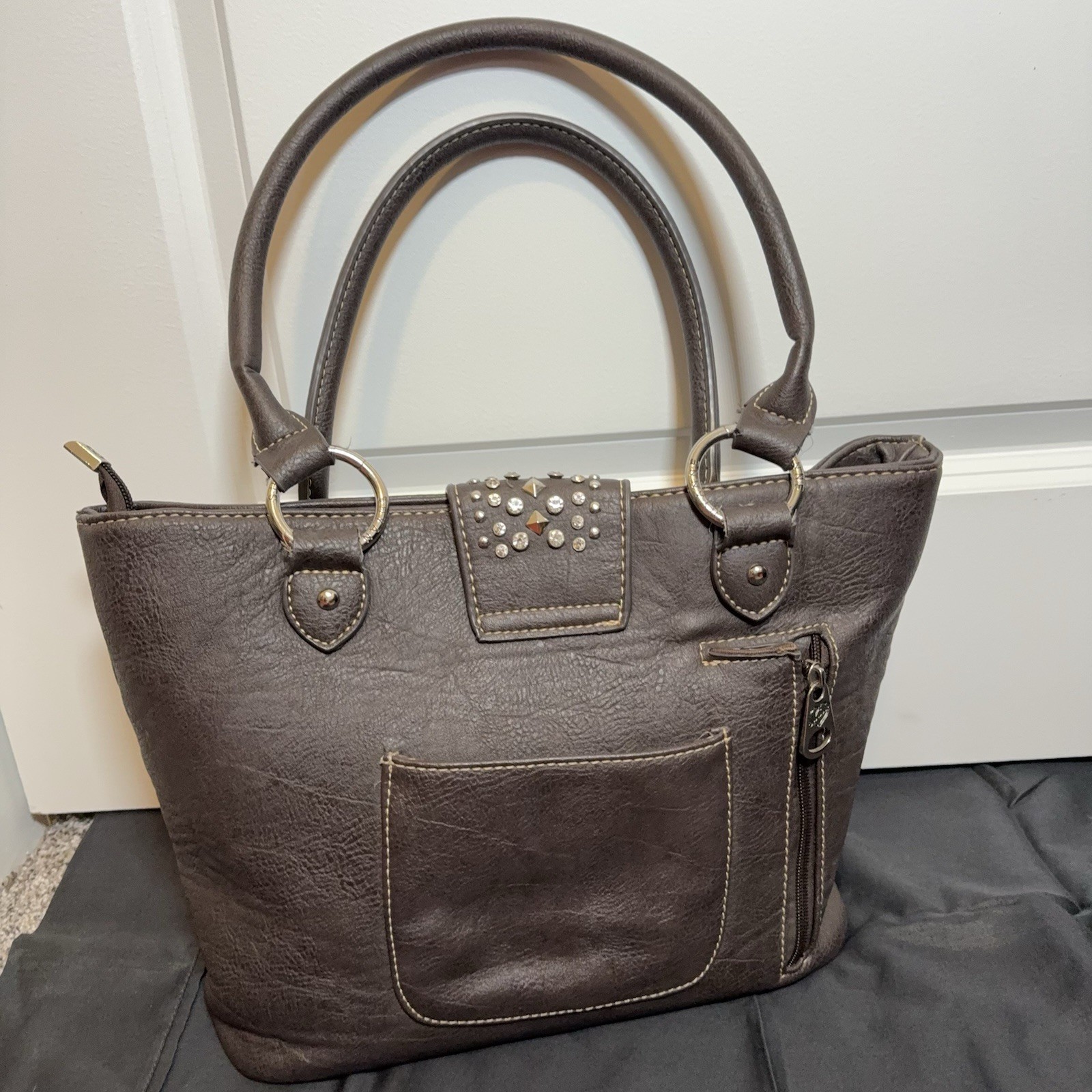 как выглядит Shyanne Country Western Rhinestone Purse Gray Heart Zipper Studded Cowgirl Bling фото