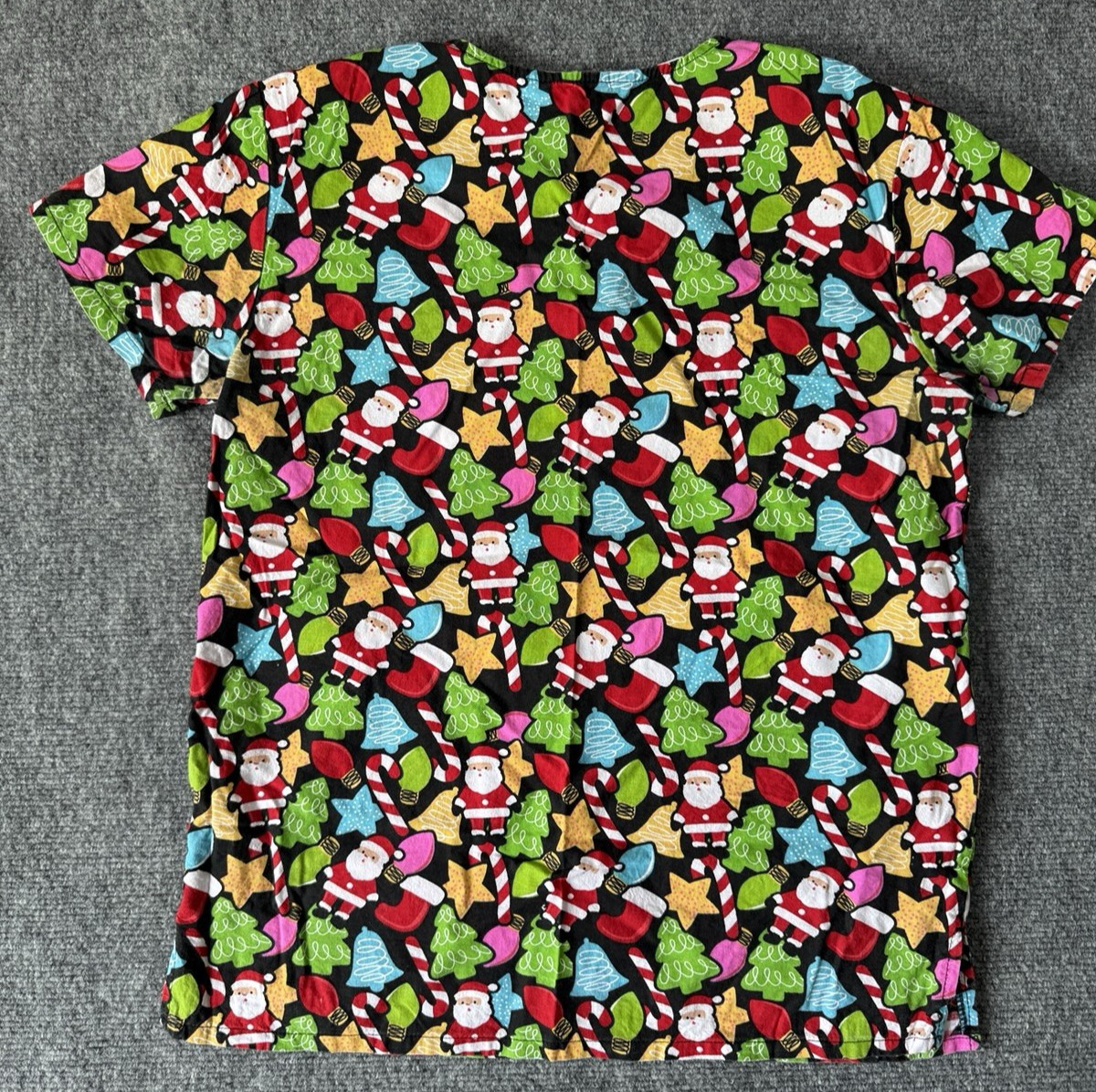 Christmas, Santa Claus Scrub Top Multicolor Women s XS