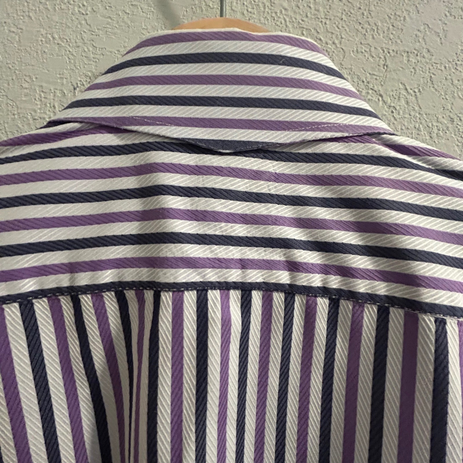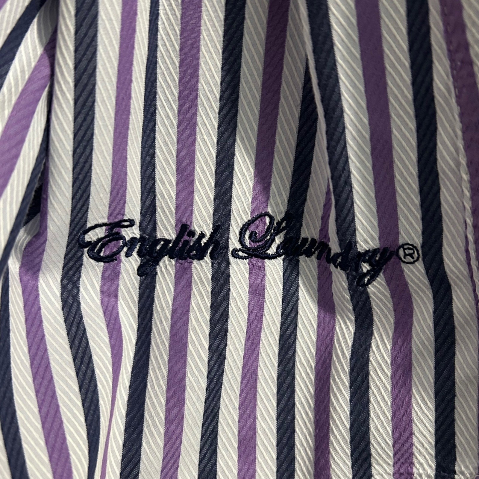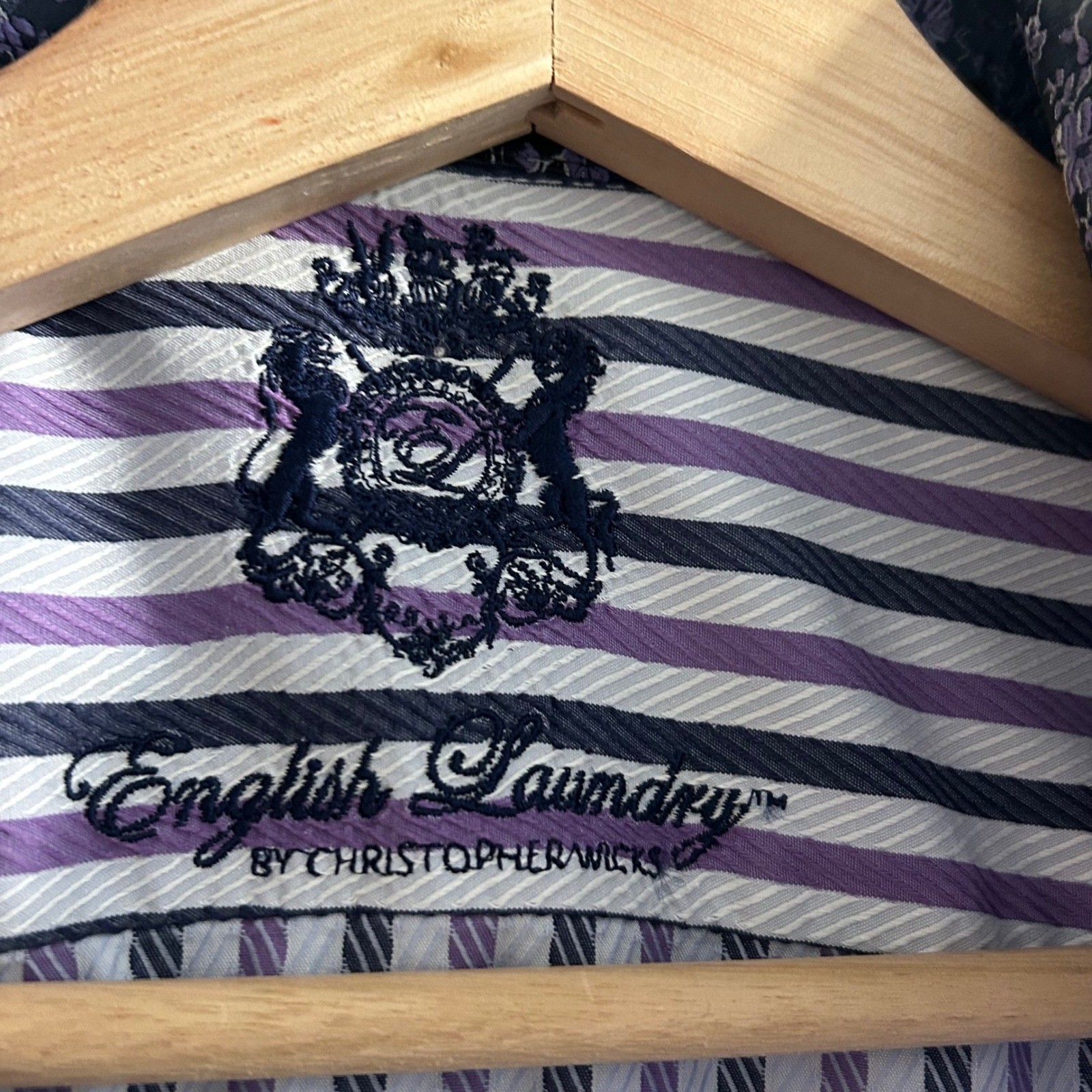 как выглядит English Laundry Mens Striped Dress Shirt Purple Button Down Size 16 34/35 фото