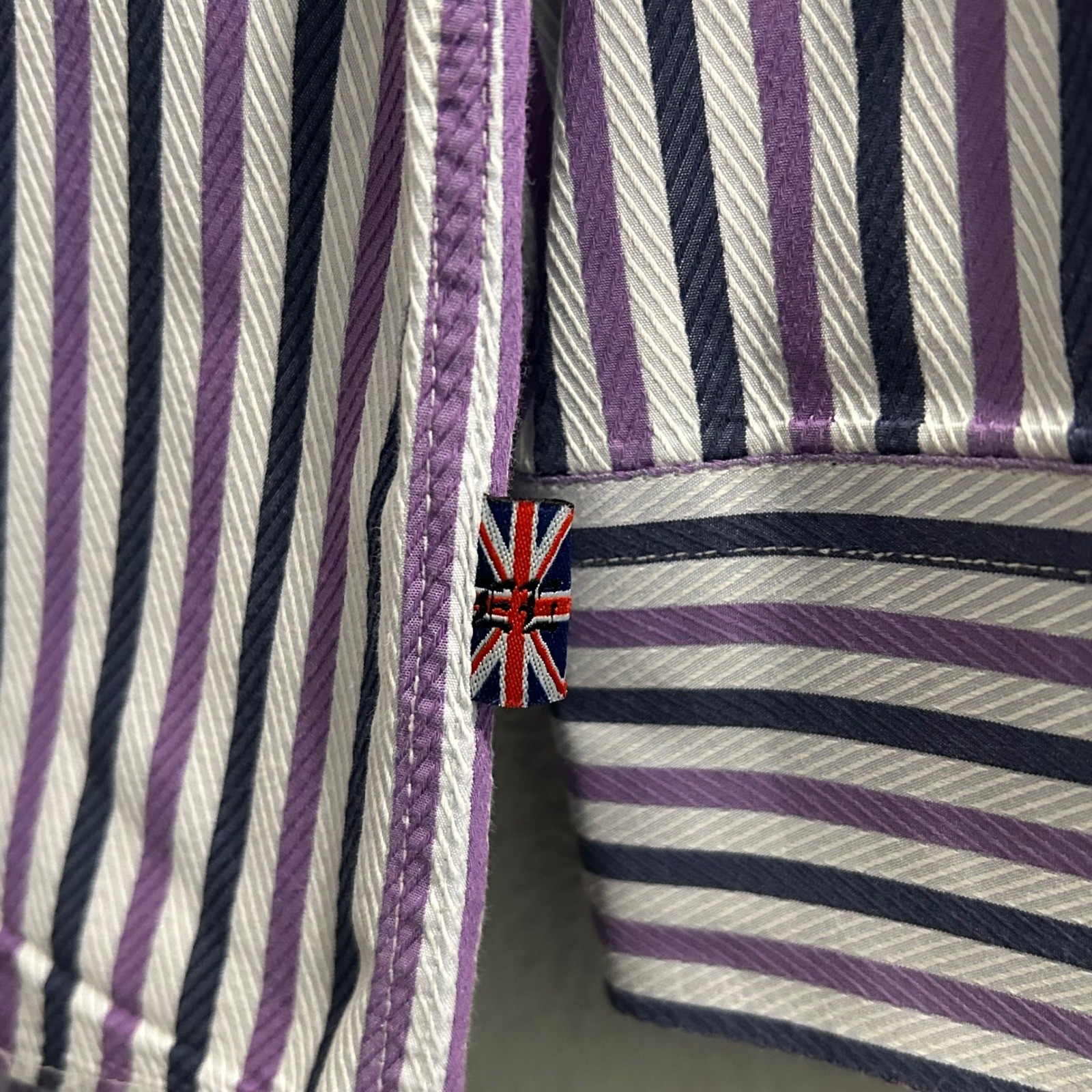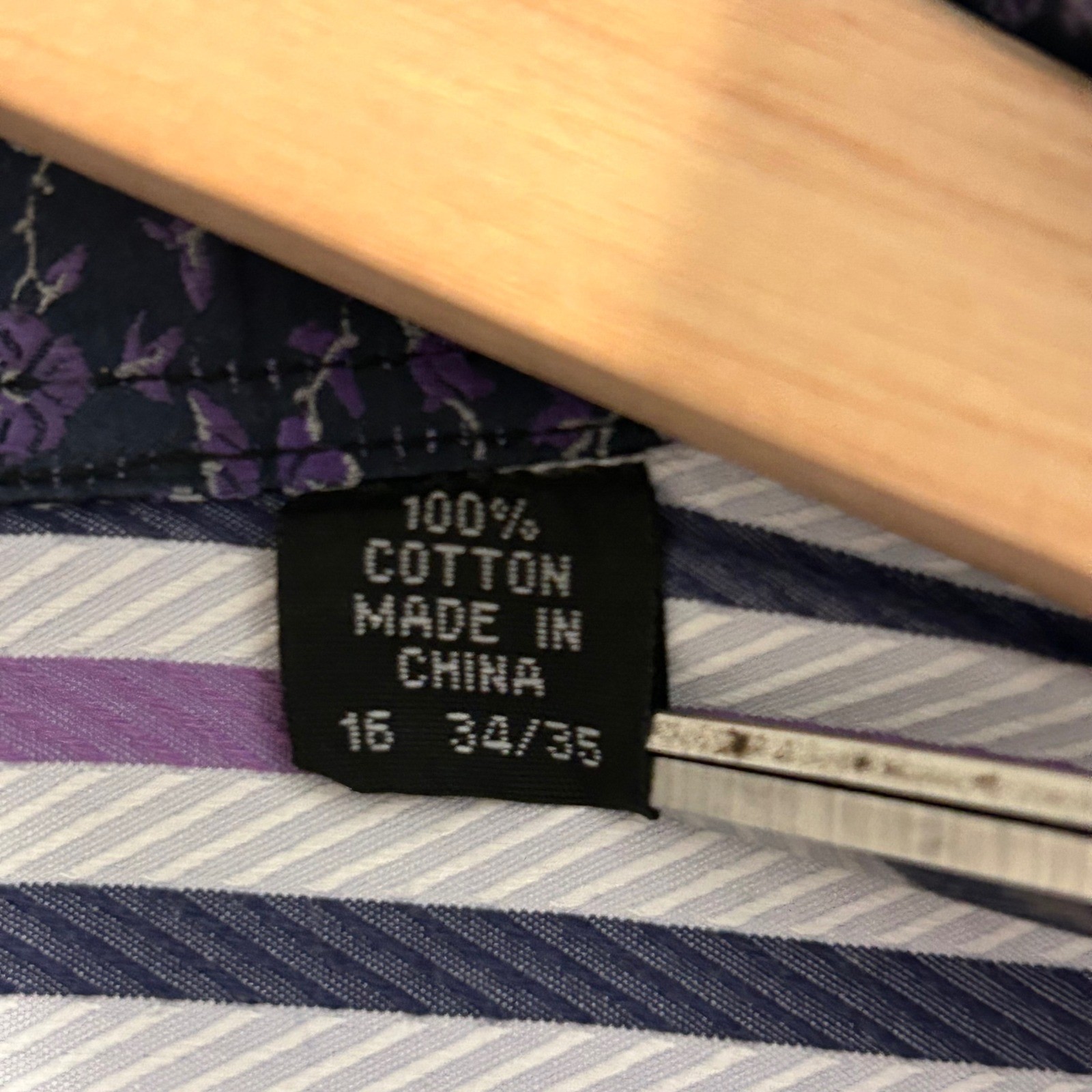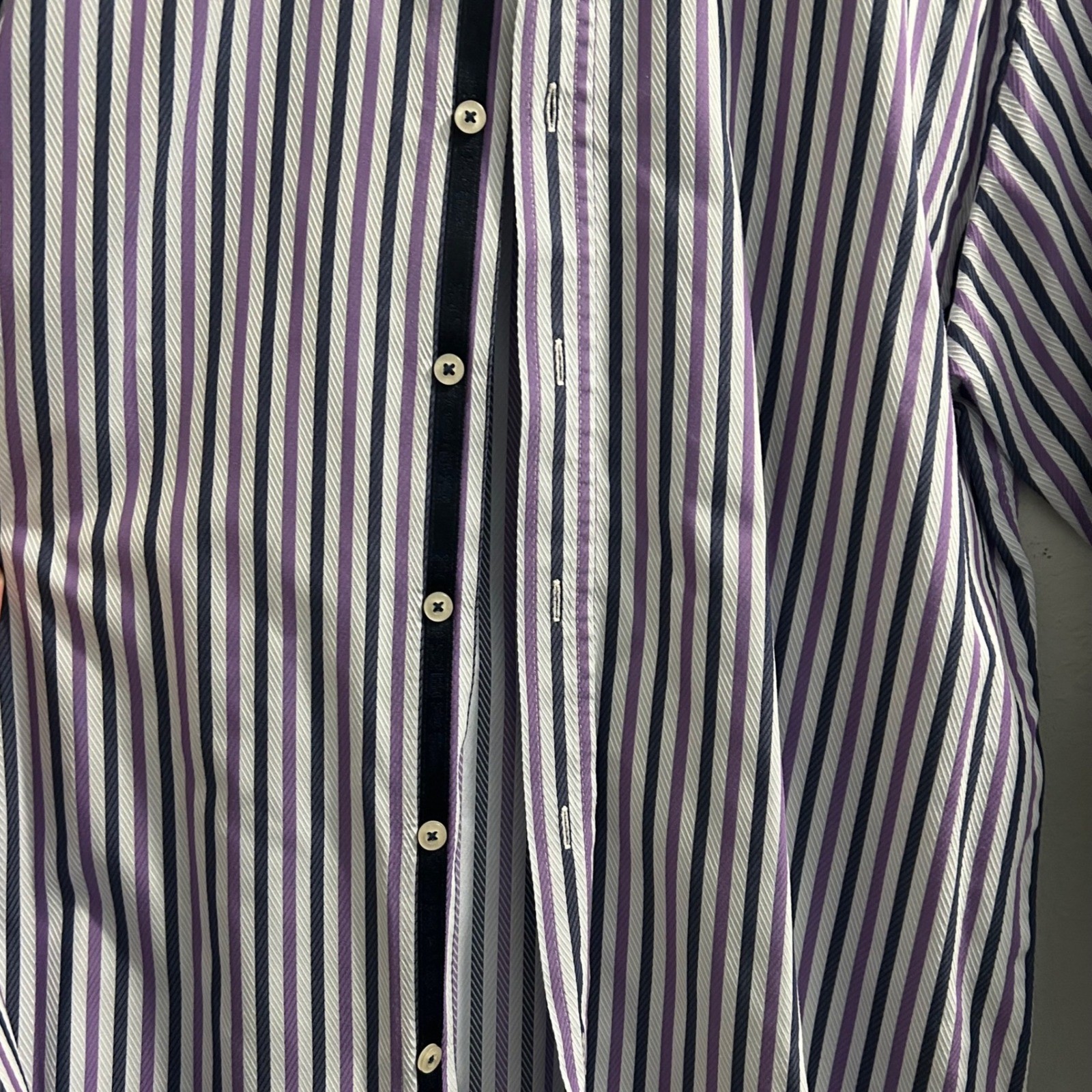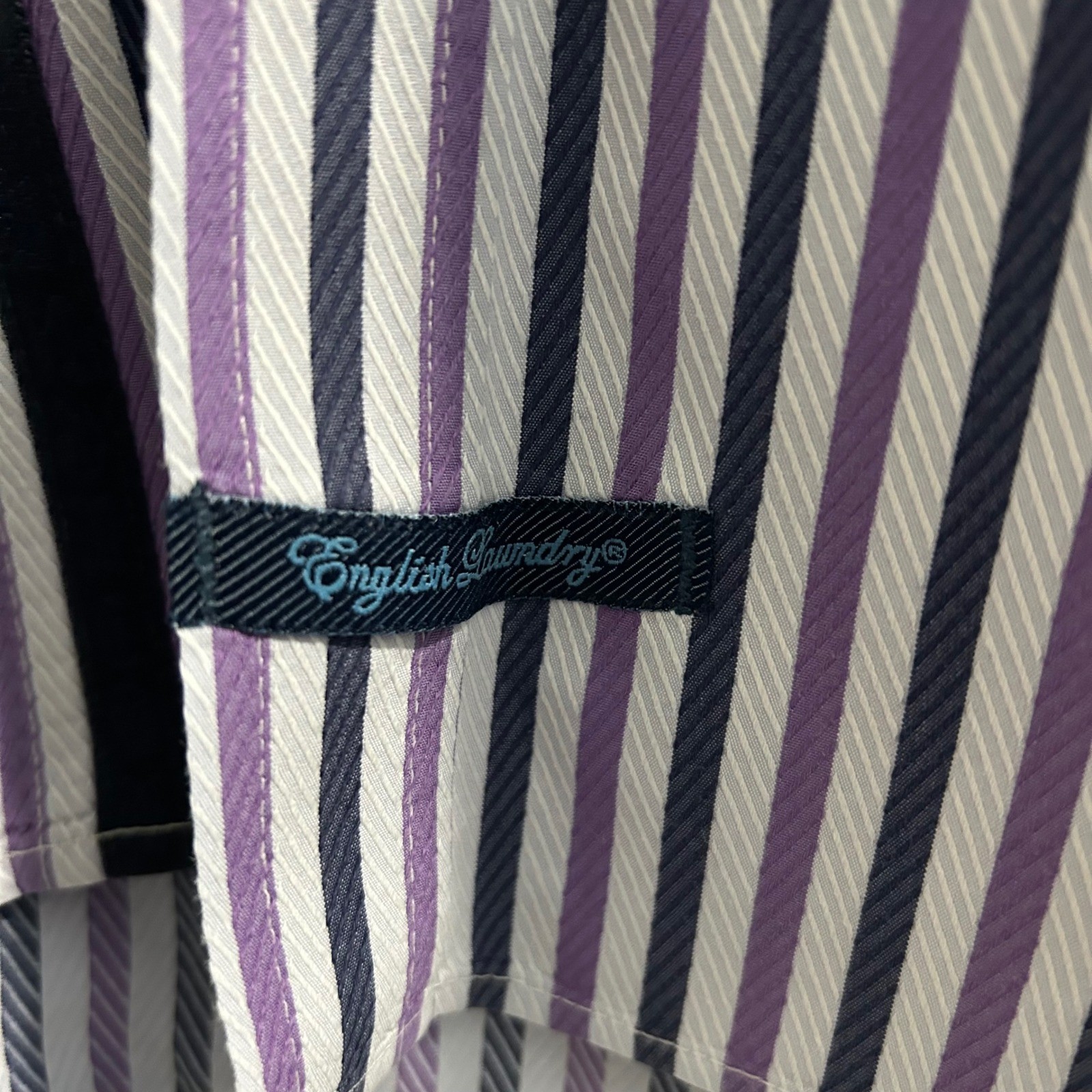 как выглядит English Laundry Mens Striped Dress Shirt Purple Button Down Size 16 34/35 фото