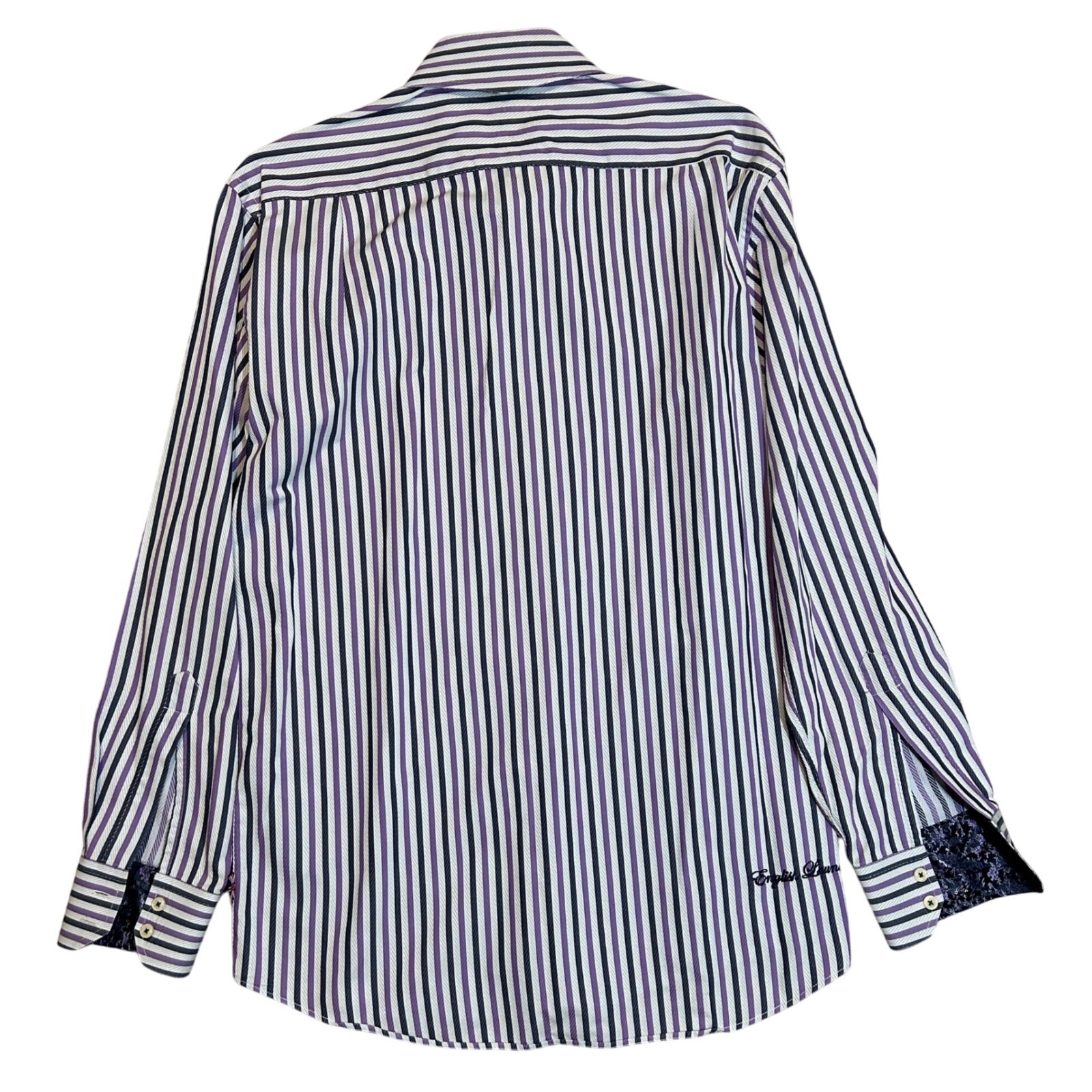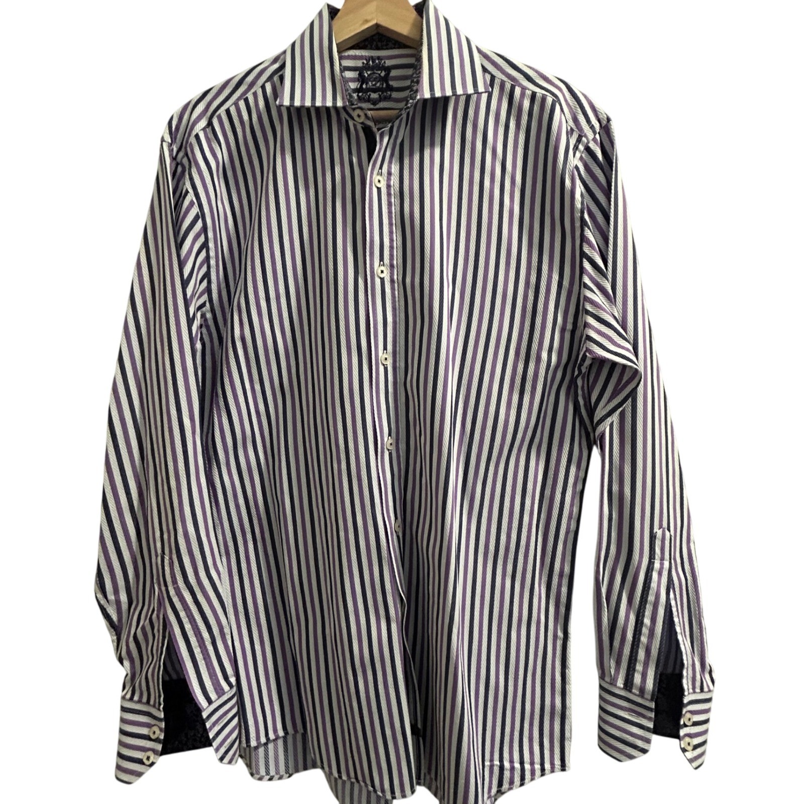 English Laundry Mens Striped Dress Shirt Purple Button Down Size 16 34/35