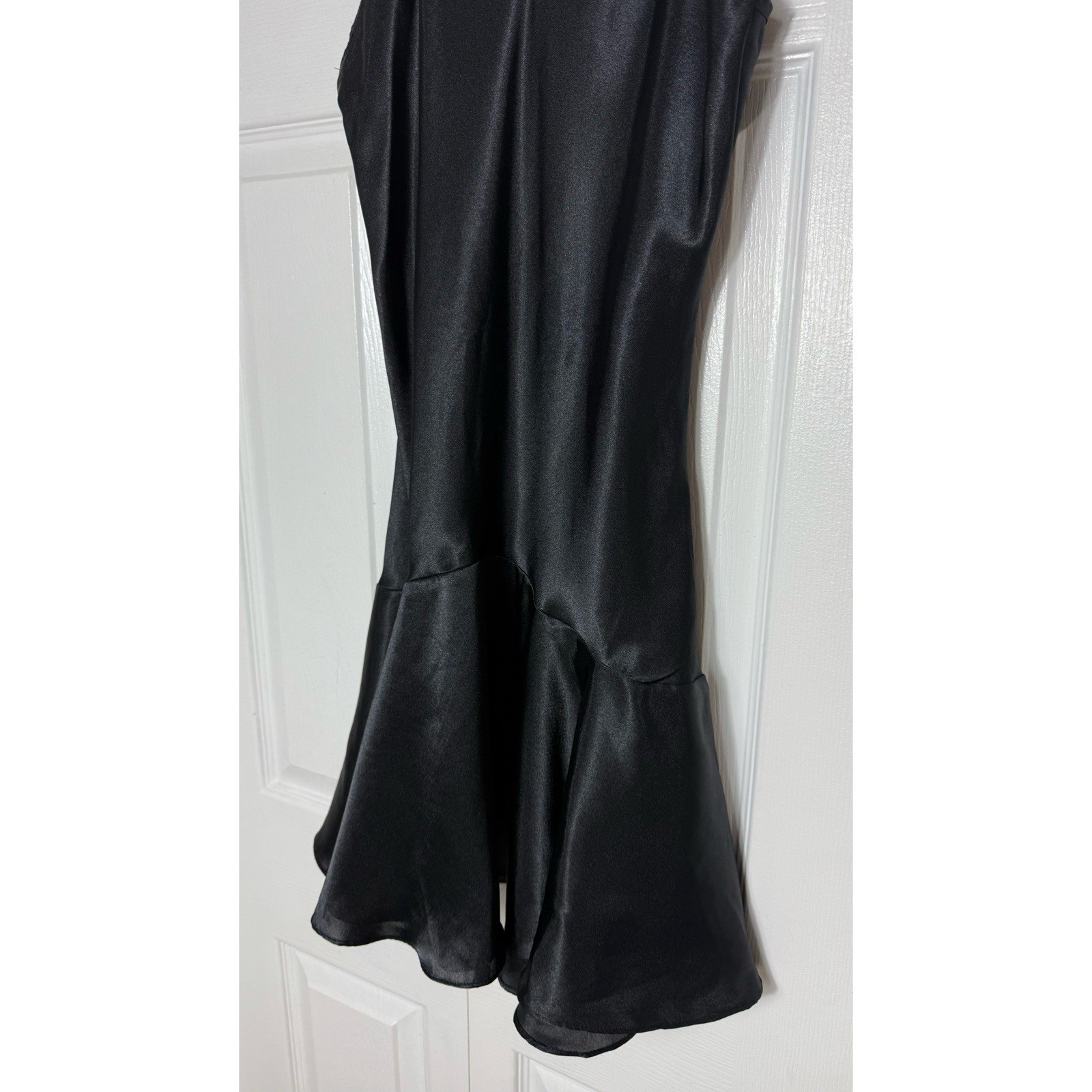 как выглядит Vintage Victorias Secret Black Flounce Mini Slip Dress Nightgown Size 8 Medium фото
