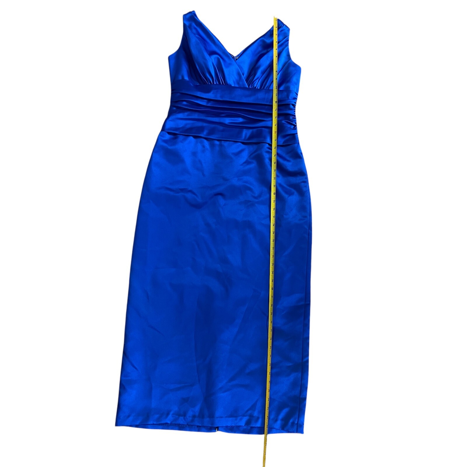 Prom Dress 14 Royal Blue Ruching Sleeveless Ankle Length Wedding David's Bridal