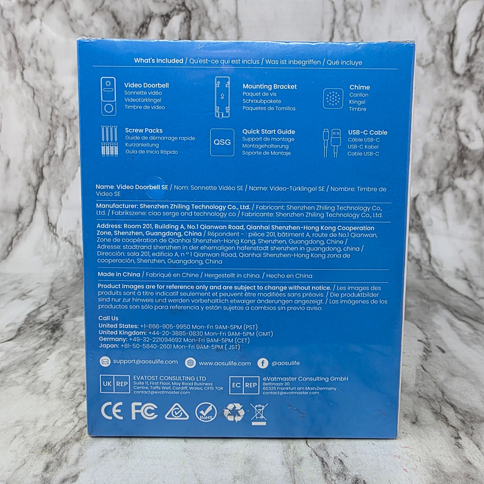 AOSU Battery-Powered Video Doorbell SE with Chime 2K QHD