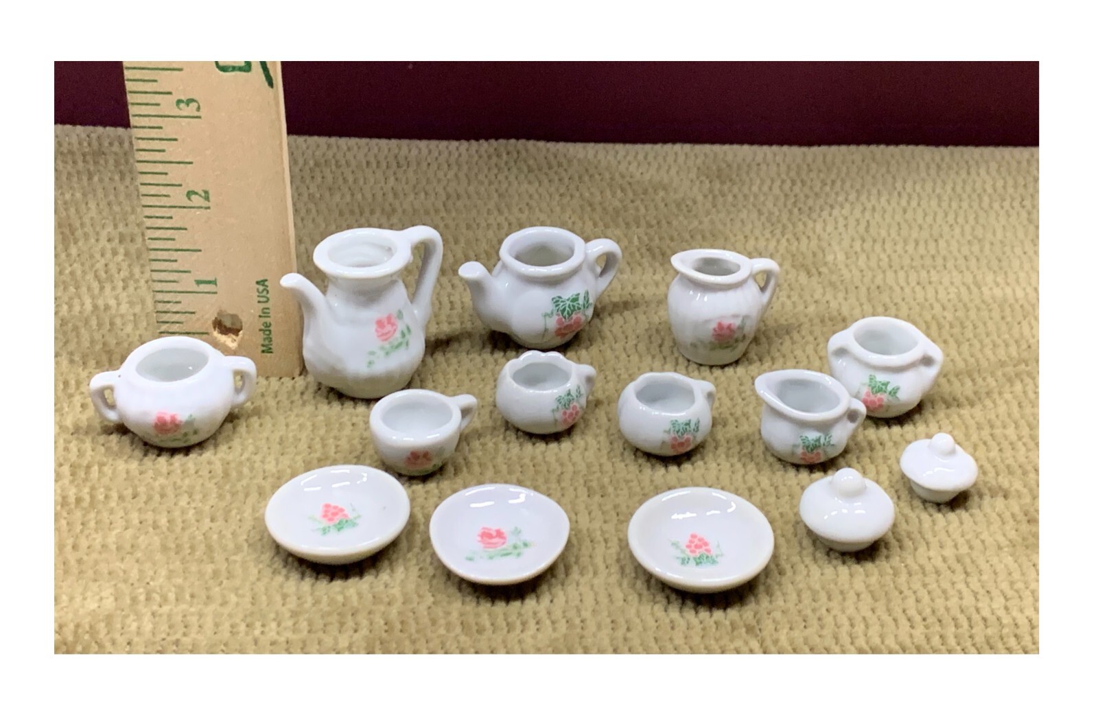 как выглядит VTG FROM FRENZY TOYS MINIATURE 14 PC OF ODDS ENDS CERAMIC/PORCELAIN TEA SET фото
