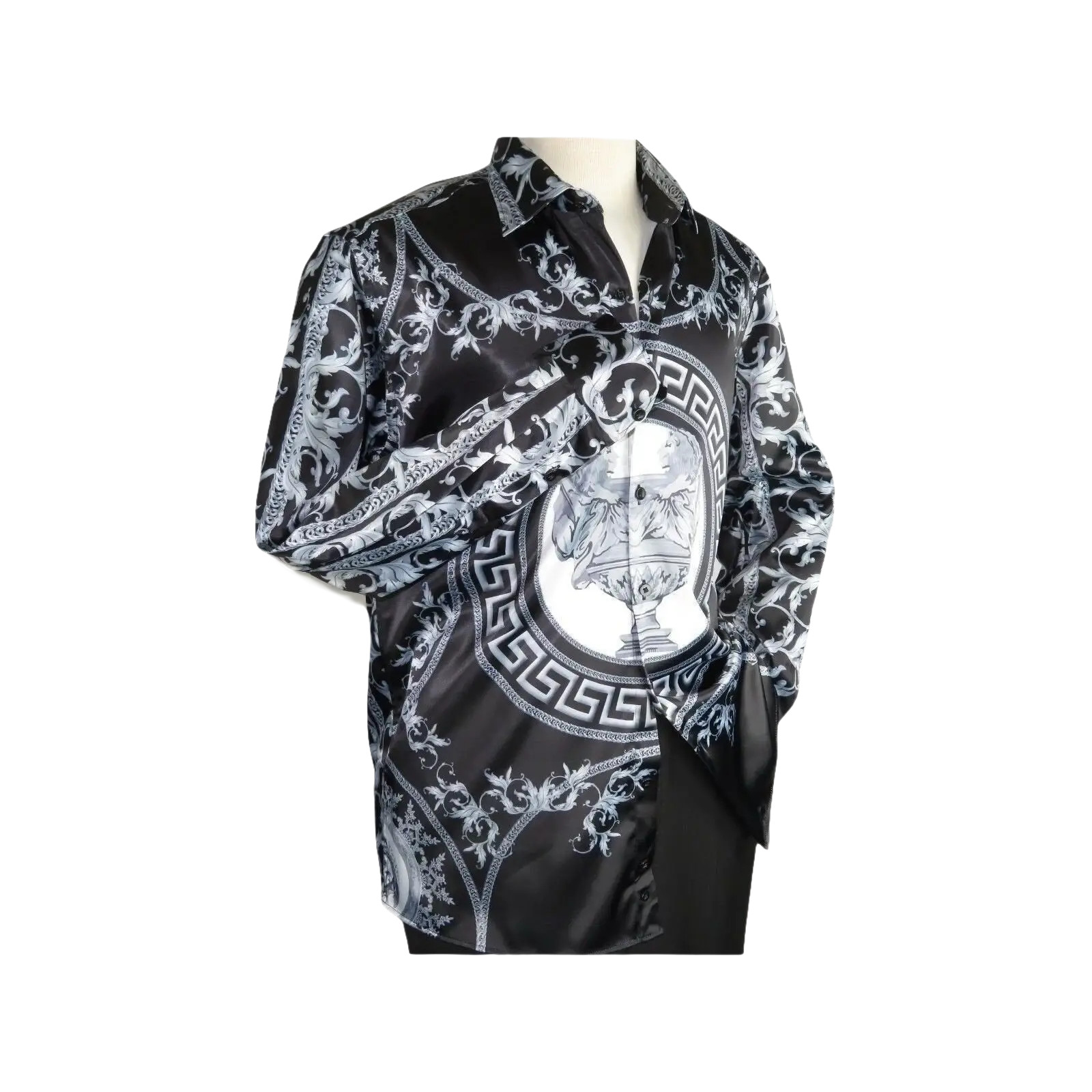 Men Satin Silky Shirt Oscar Banks Turkey Singer Stage Performer 6432 Black Lions