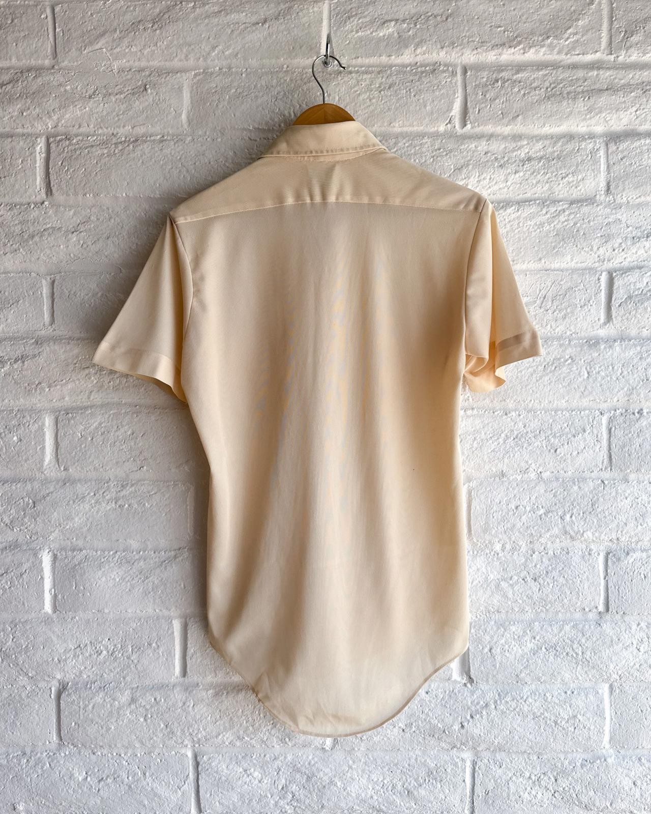как выглядит Vintage 1970s Grants Menswear Dagger Collar Shirt Tan Mens S Short Sleeve Disco фото