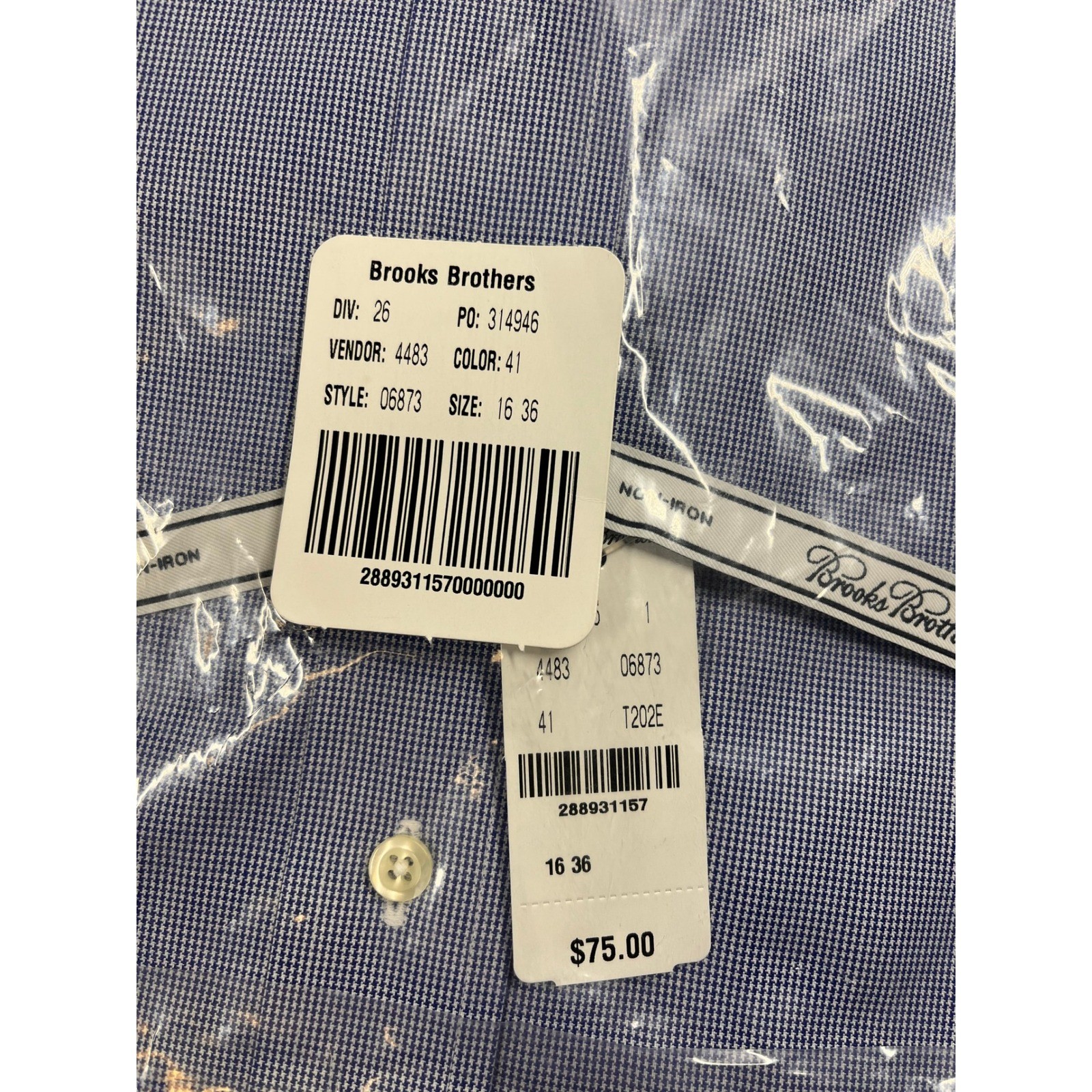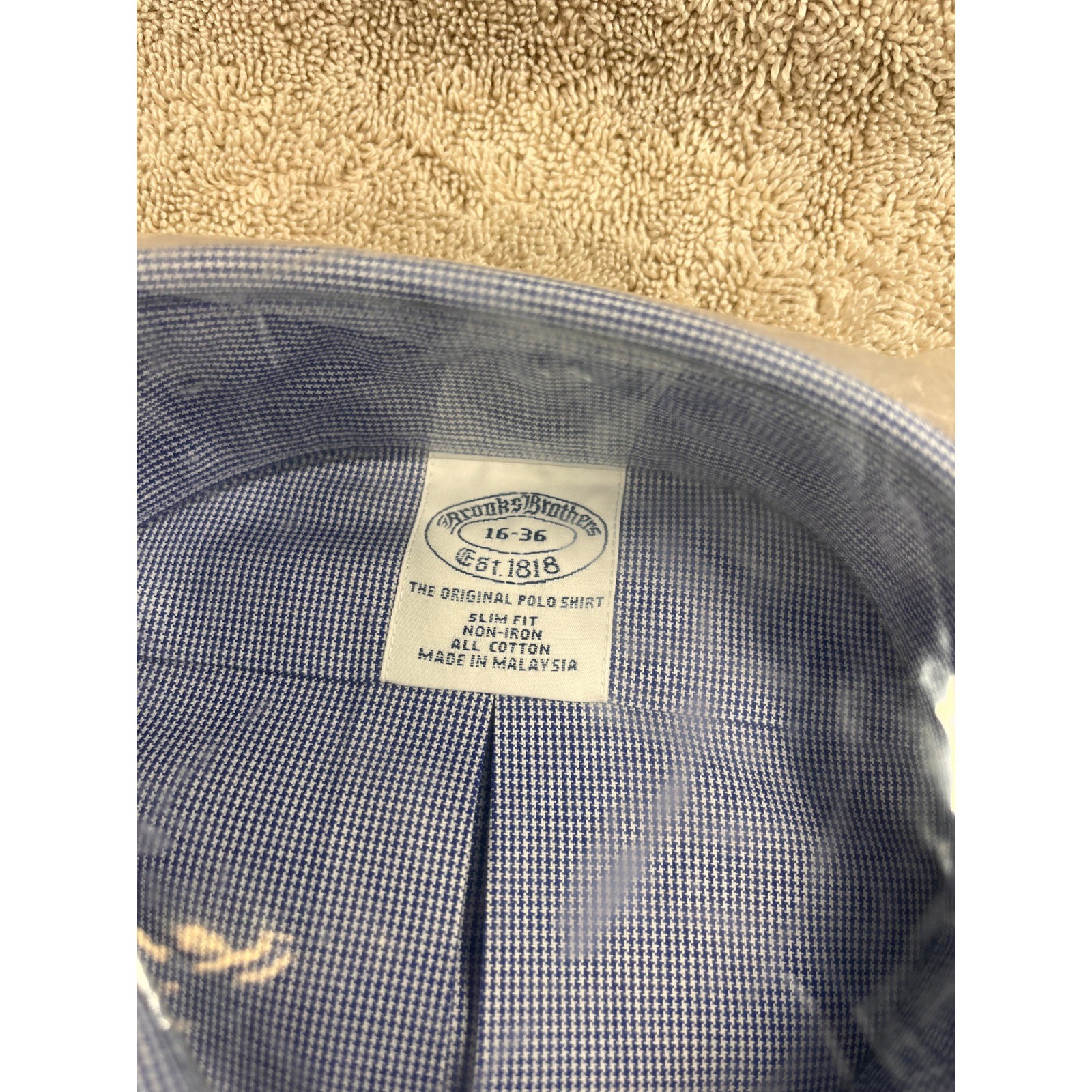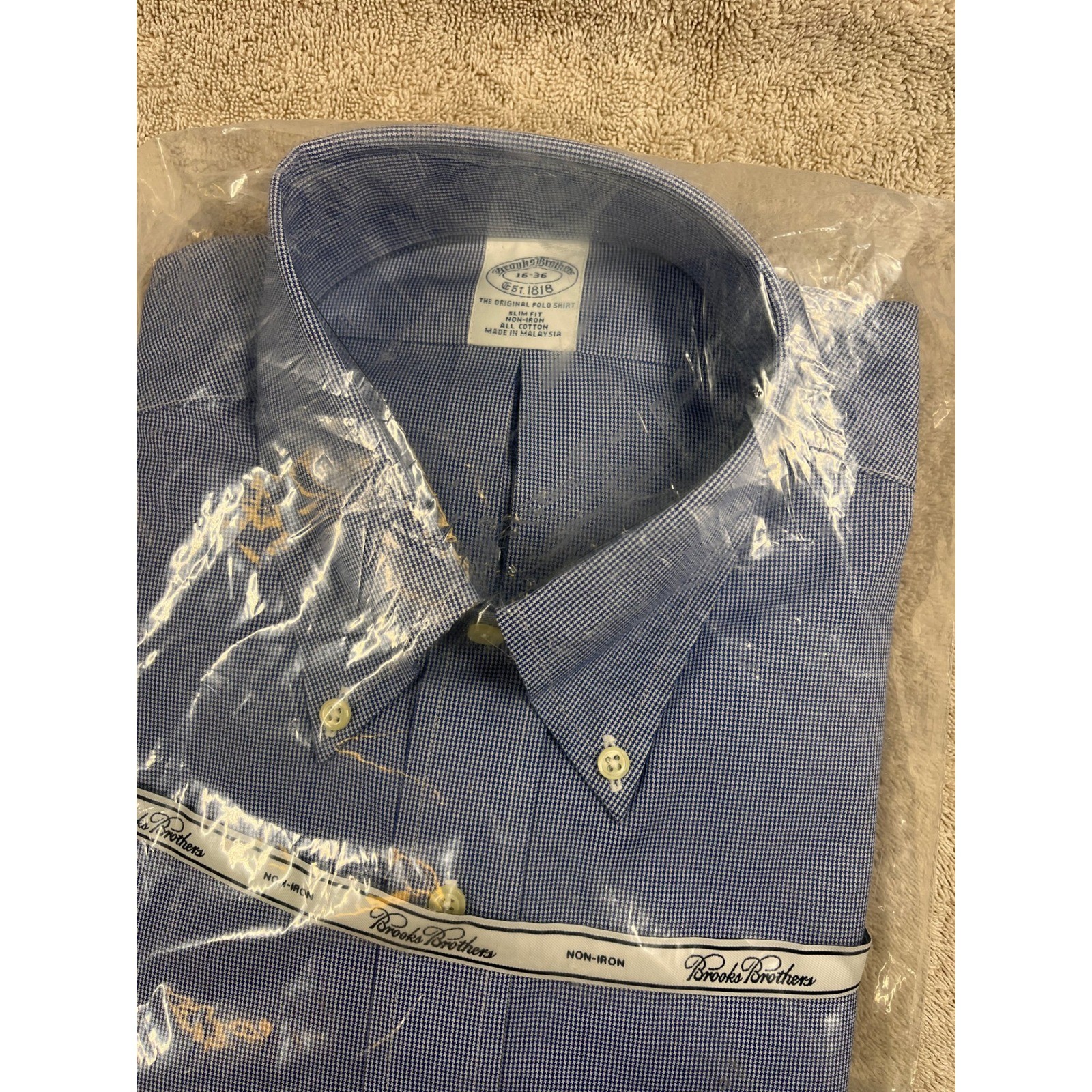 Brooks Brothers Mens 16 36 Slim Fit Non-Iron Dress Shirt Blue Micro Check 06873