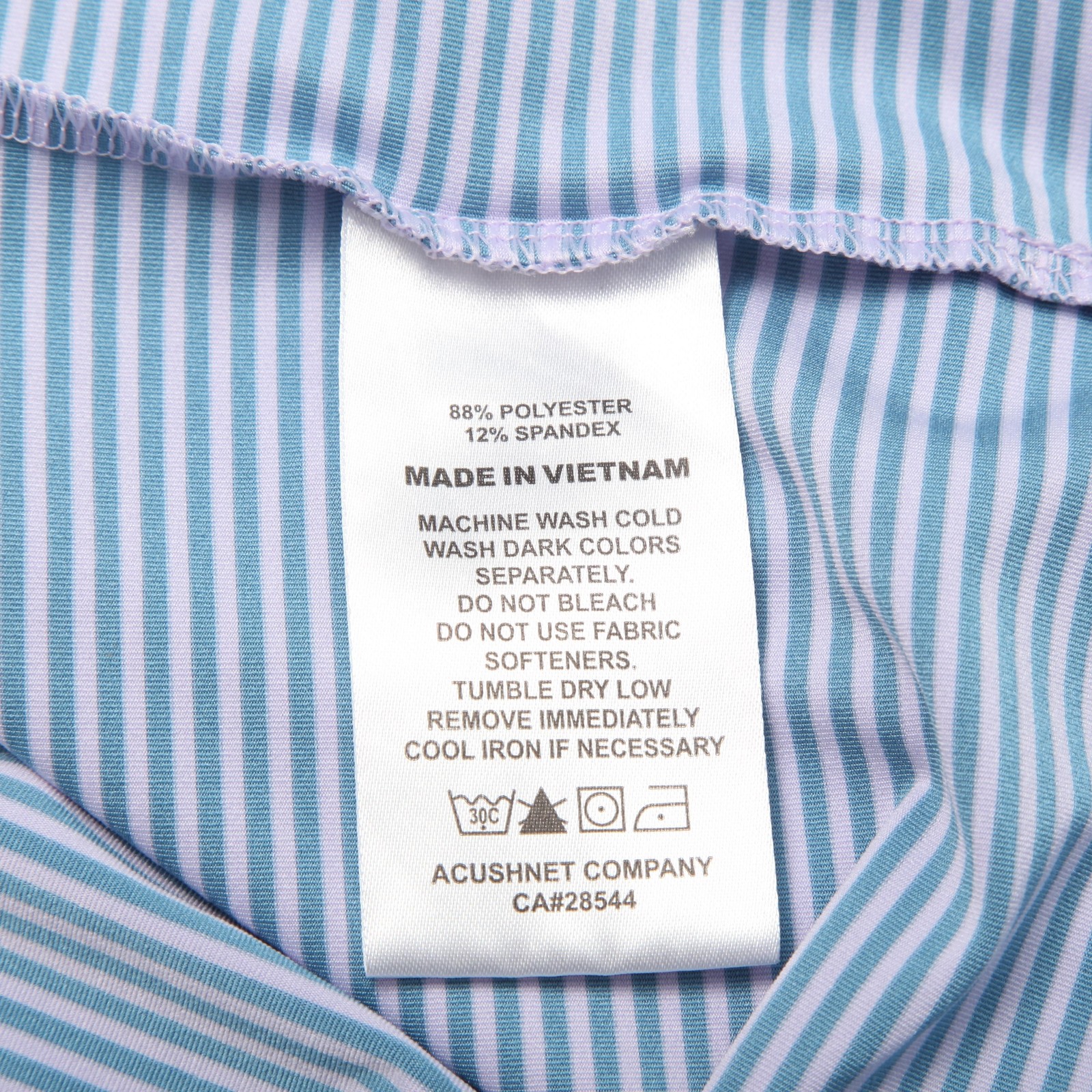 как выглядит FootJoy Polo Shirt Mens Large Purple Blue Striped Performance Golf No Logo фото