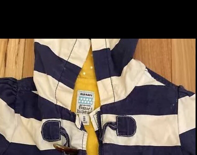 как выглядит Old navy girls blue and white striped hooded jacket With Yellow Interior Size 4t фото