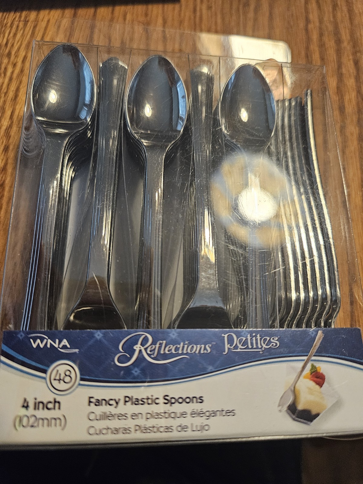 как выглядит FIVE New Boxes of 48 Each Mini Fancy Spoons-SilverPlastic фото