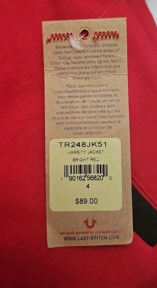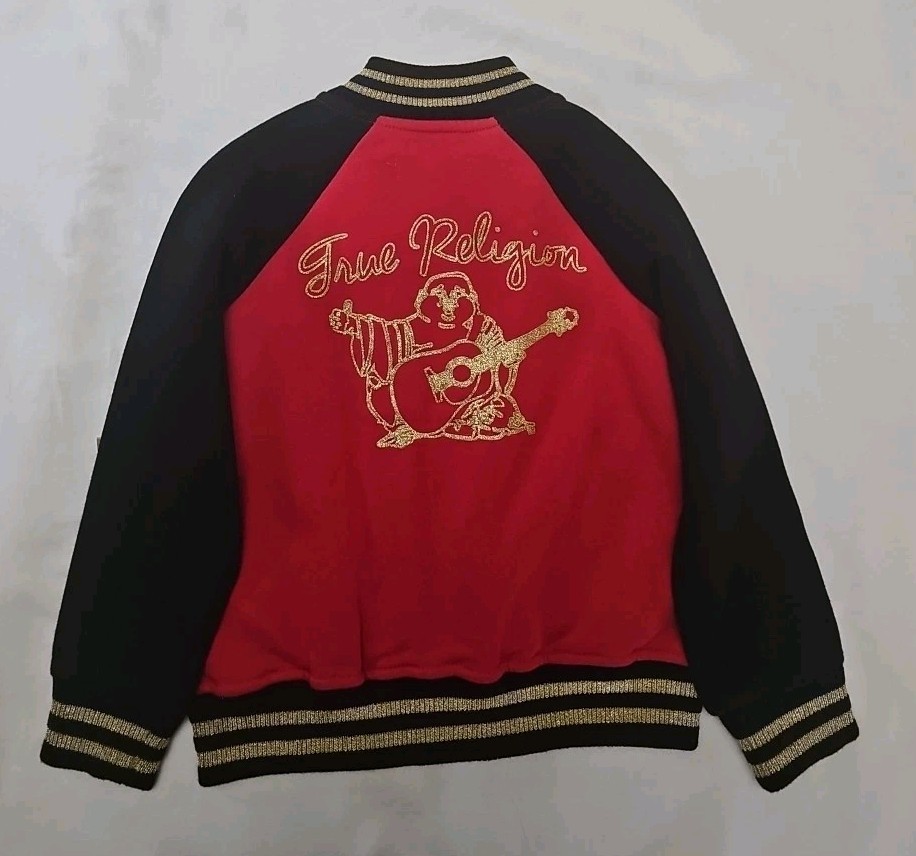 как выглядит True Religion Kids Varsity Jacket Size 4 Red Black Gold Full Zip Long Sleeves фото