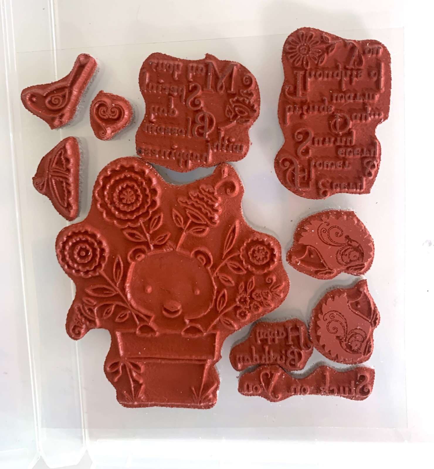 Darcies 10 Piece Cling Mount Red Rubber Stamp Set JCS144 BLOOM WITH HAPPINESS
