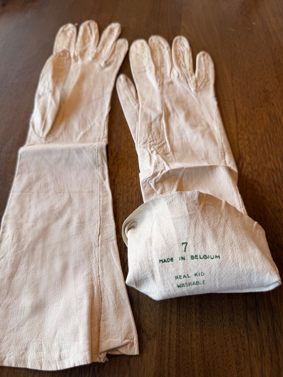 VINTAGE Women's Mid-Arm Kid Leather Gloves Size 7 Ivory