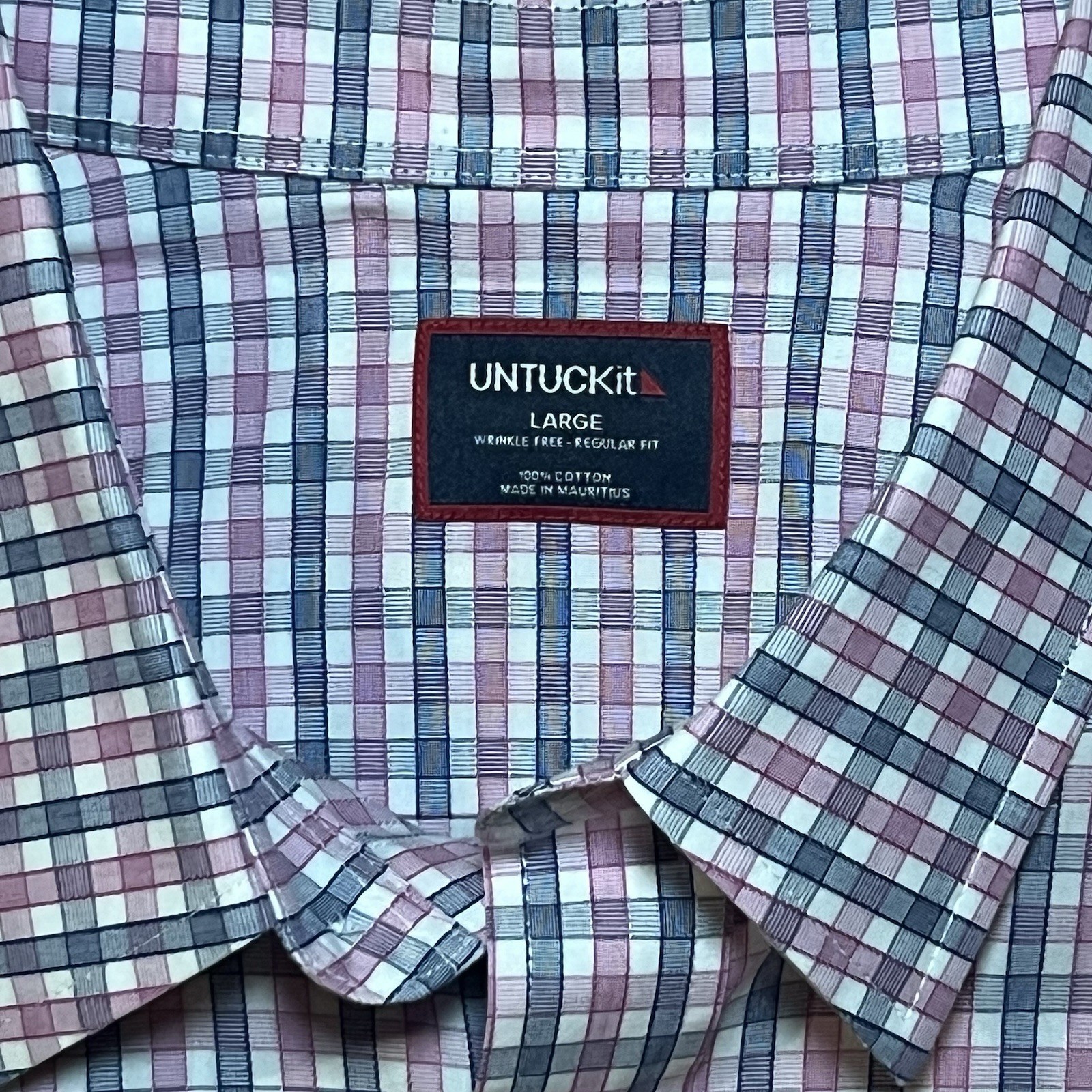 Untuckit Reg Fit Wrinkle Free Mens Large Blue Pink Check Button Up Long Sleeve