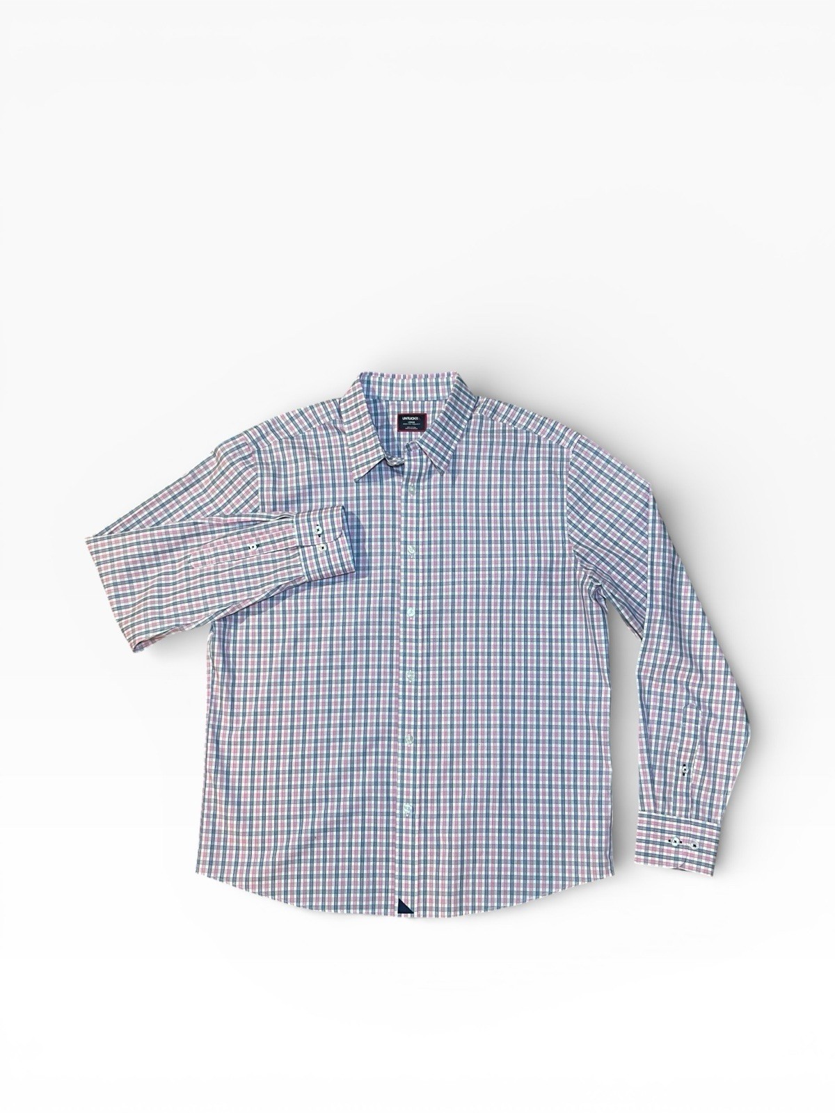 как выглядит Untuckit Reg Fit Wrinkle Free Mens Large Blue Pink Check Button Up Long Sleeve фото