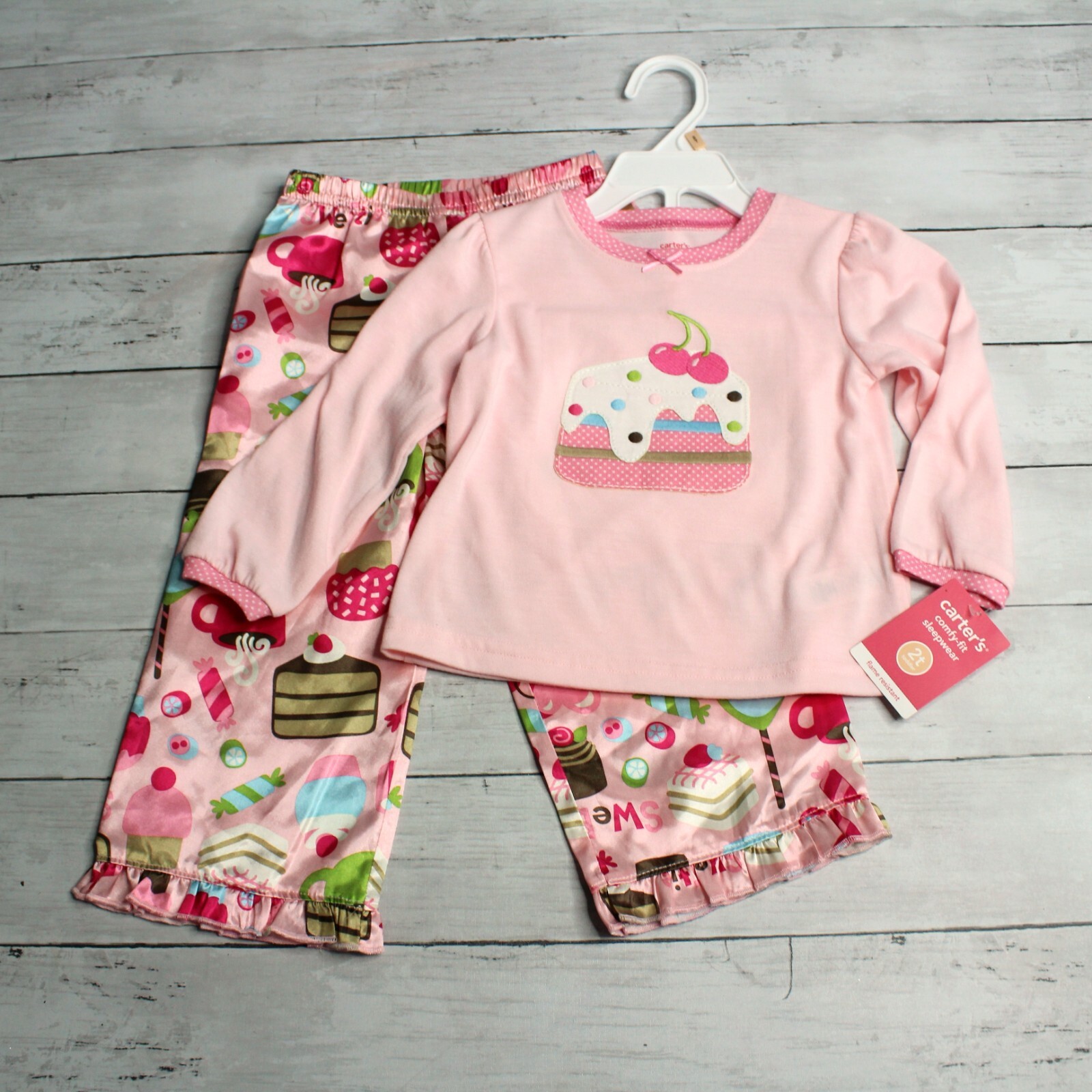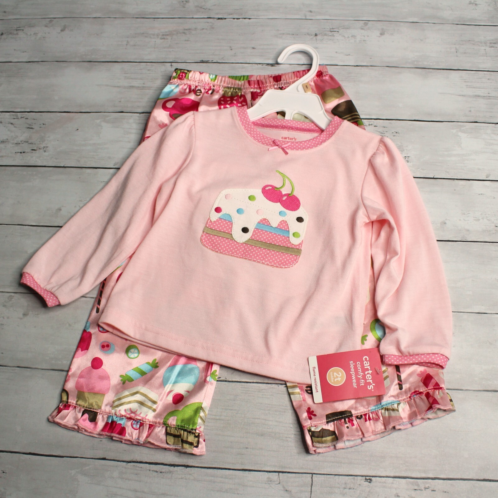 как выглядит Carters Vintage Girls Pajama Set Toddler Size 2T Top Silky Pants фото