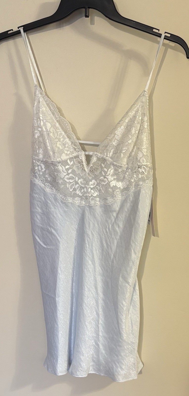 как выглядит Linea Donatella Womens Luxe Satin Bridal Chemise, Pale Blue, Size Large, 56 фото