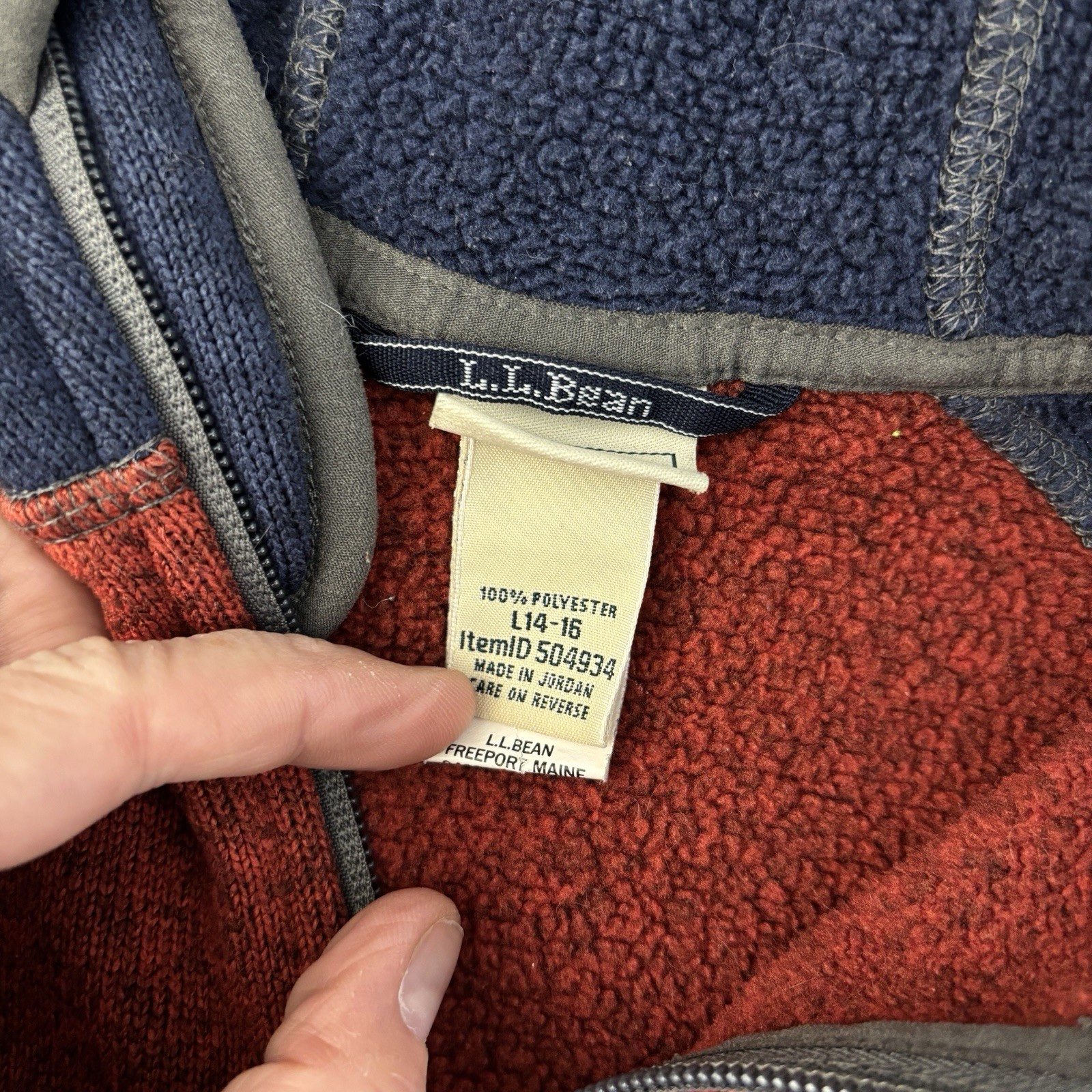 как выглядит L.L.Bean Hooded Full Zip Sweater Fleece Jacket Colorblock Youth Large 14-16 фото