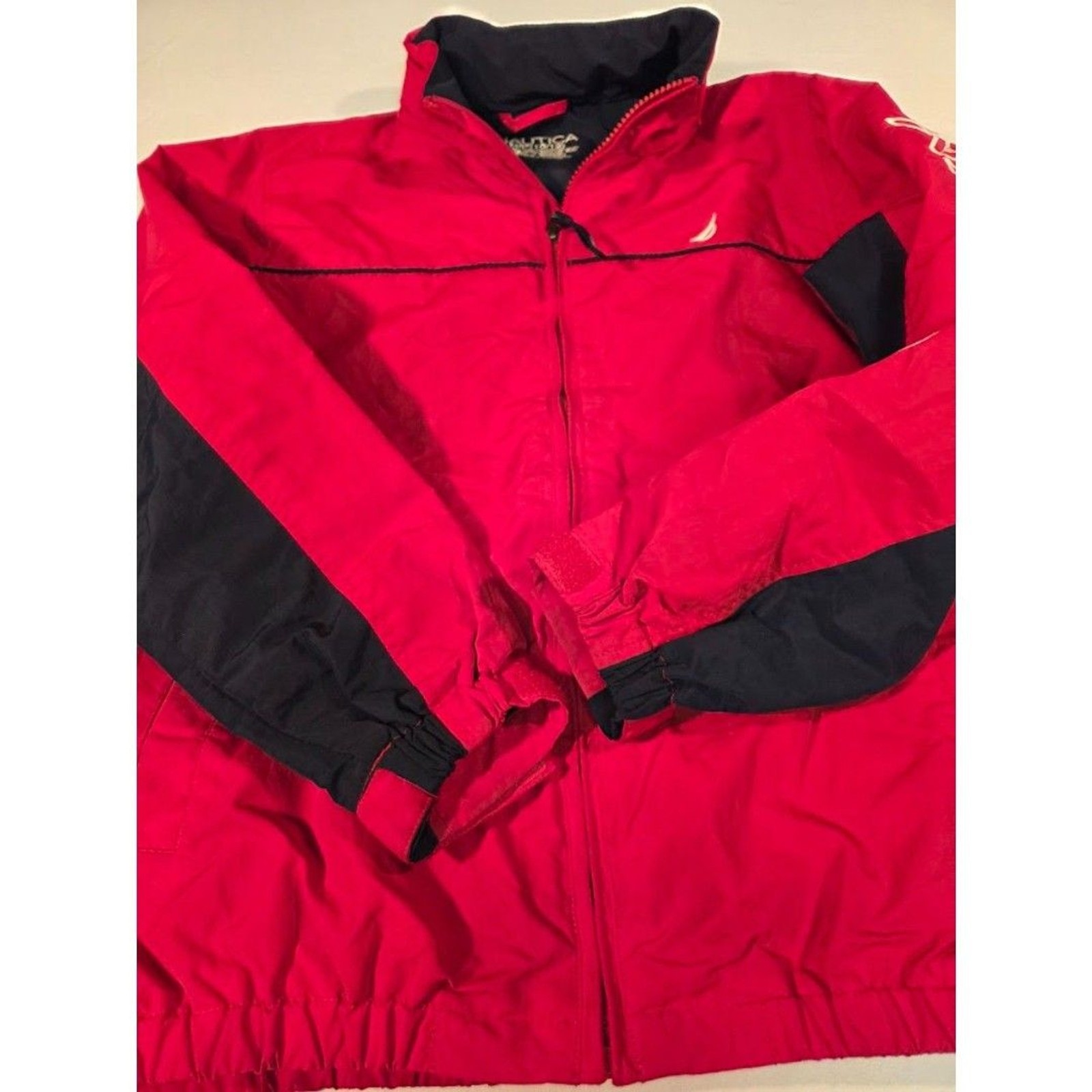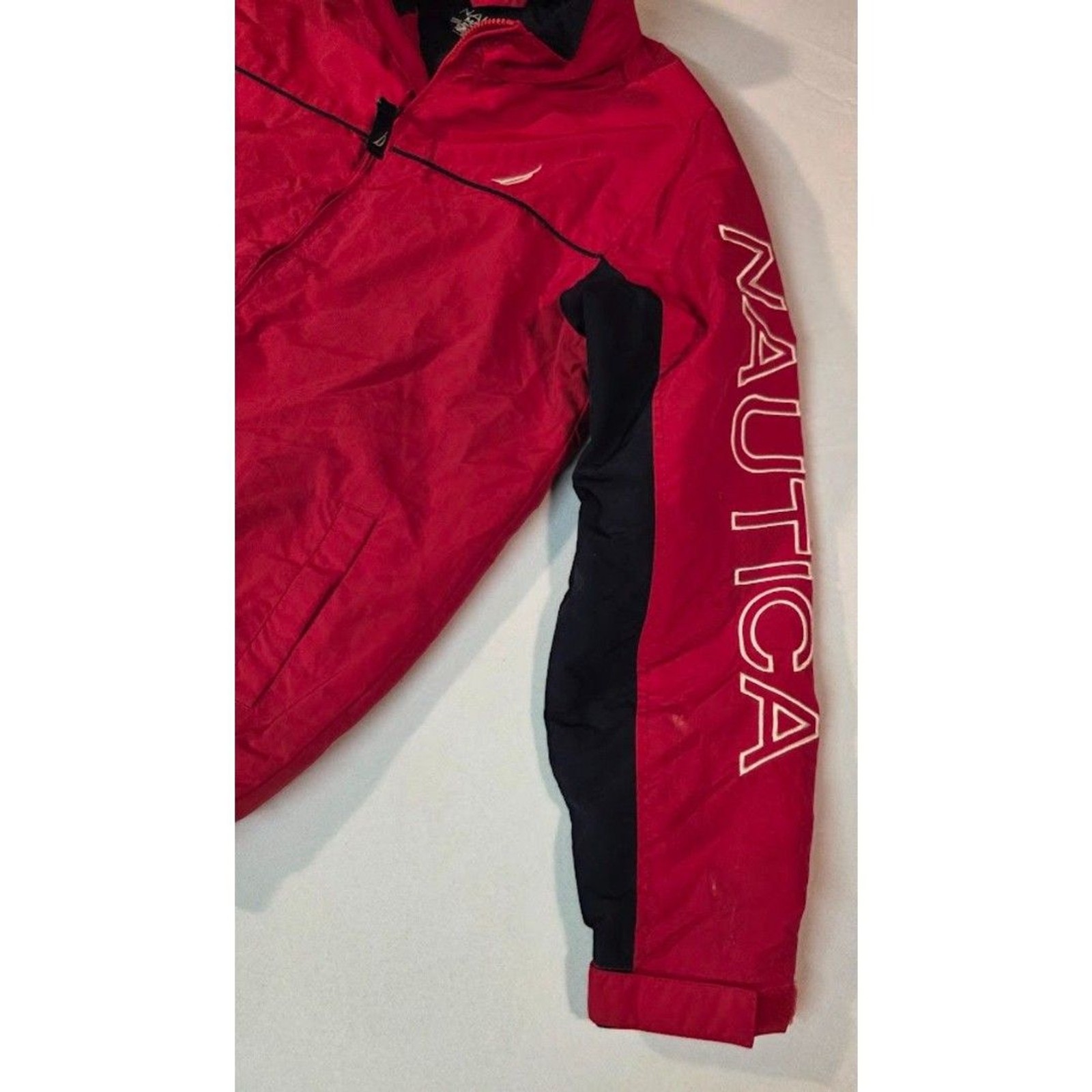 как выглядит Nautica Youth Windbreaker Jacket Red Black Hooded Sailing 10/12 фото
