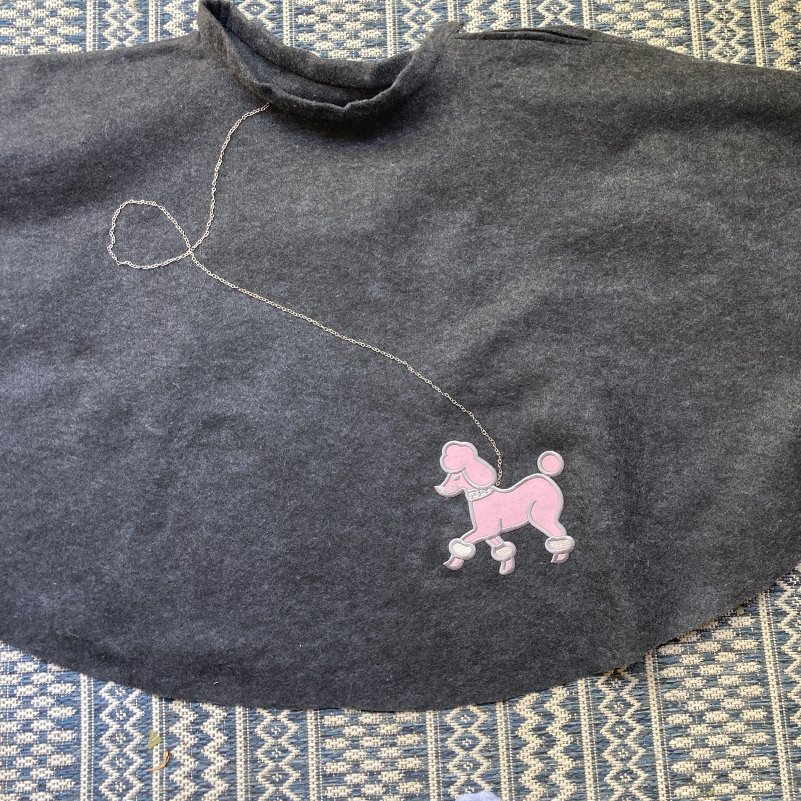 Ladies Gray Felt 1950s Style Pink Poodle Skirt Costume Retro W Real Chain Leash