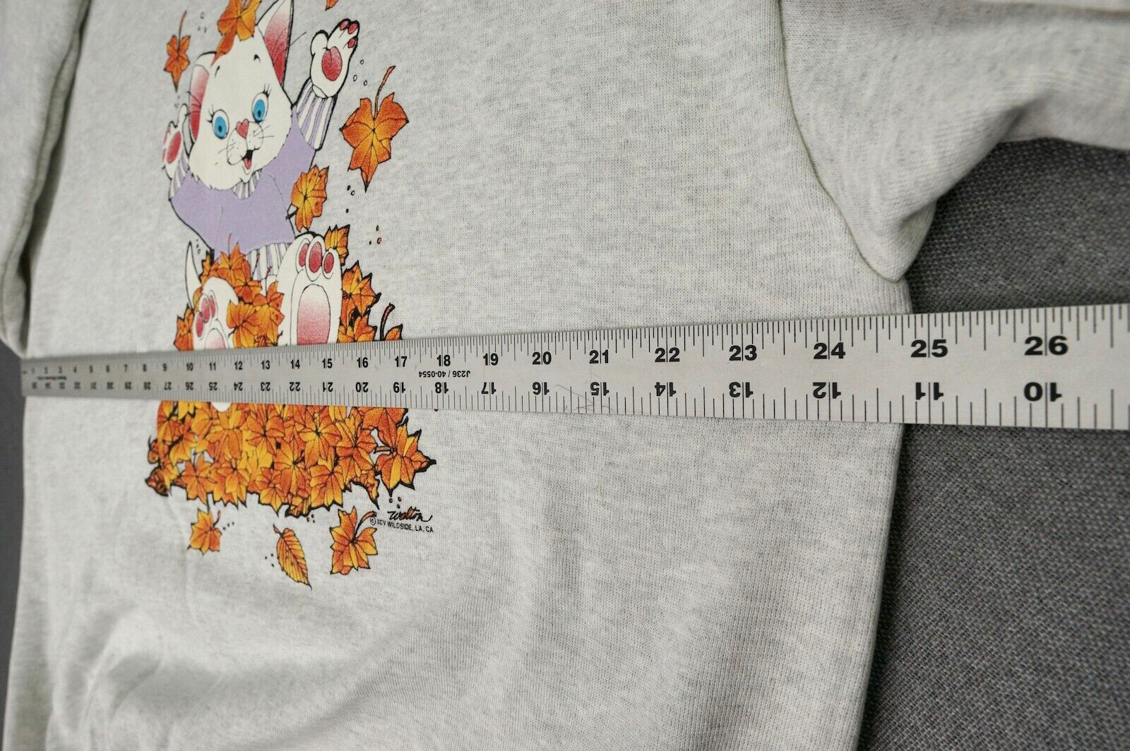 как выглядит VINTAGE 90S CAT SWEATSHIRT WOMENS XL GRAY AUTUMN LEAVES GRAPHIC PULLOVER USA фото