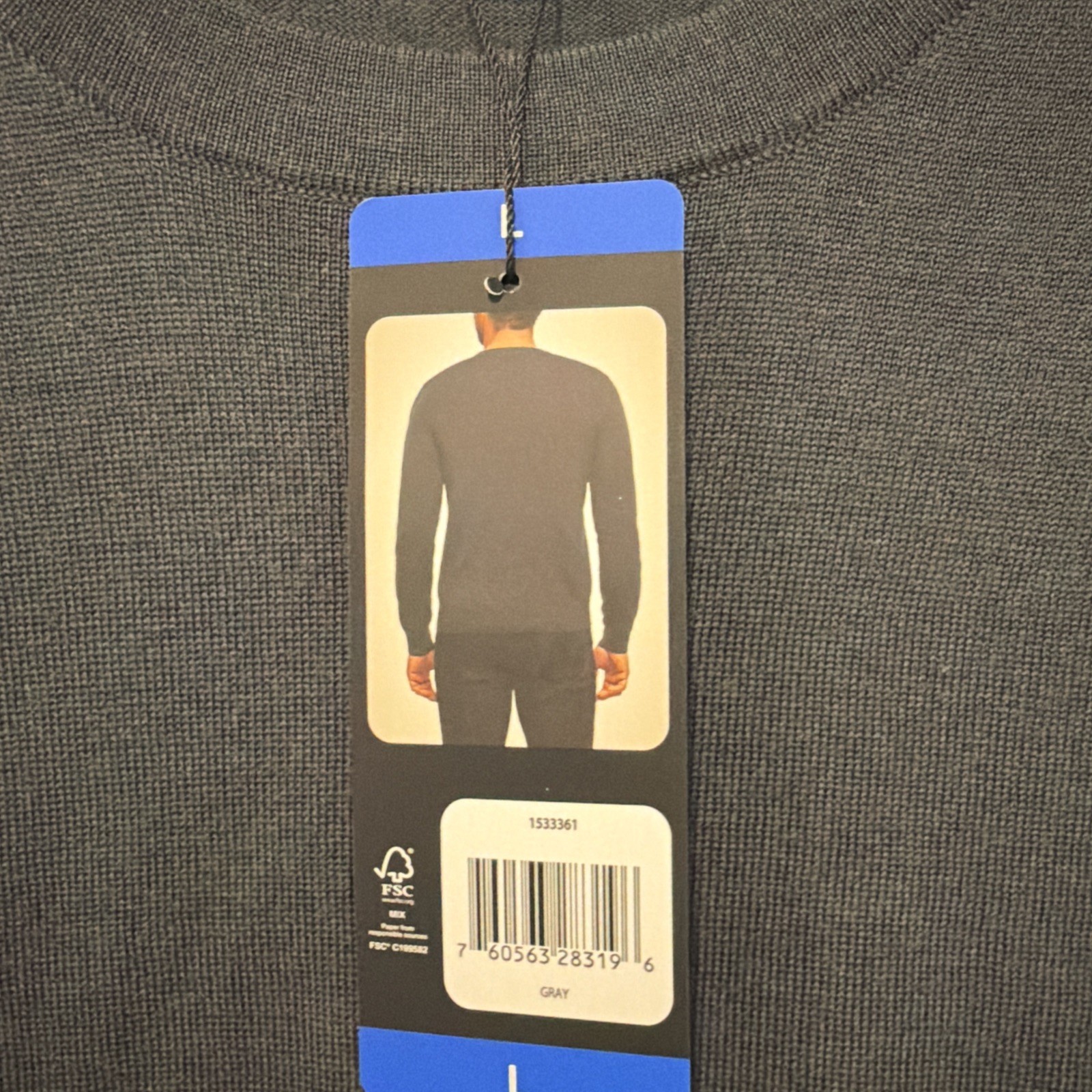 как выглядит Banana Republic Mens Large Merino Wool Sweater Gray NEW Crew Neck Pullover фото
