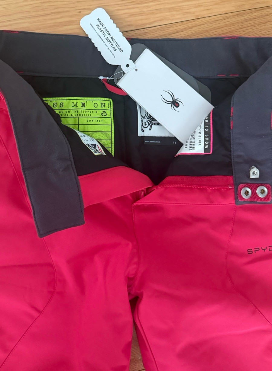 NWT Spyder Ski Snow Pants, Soft-shell, Pink, Youth Girls Sz 16