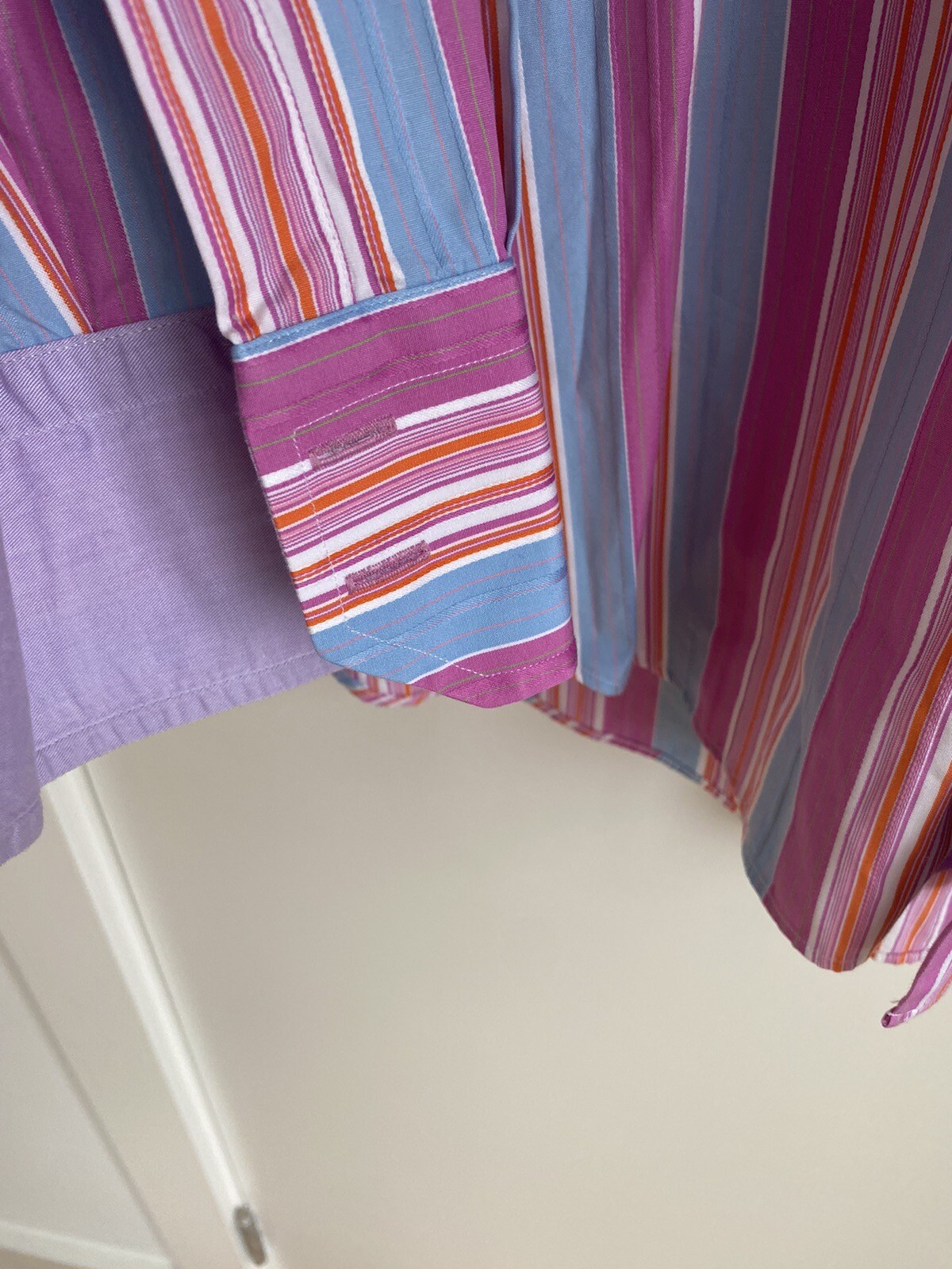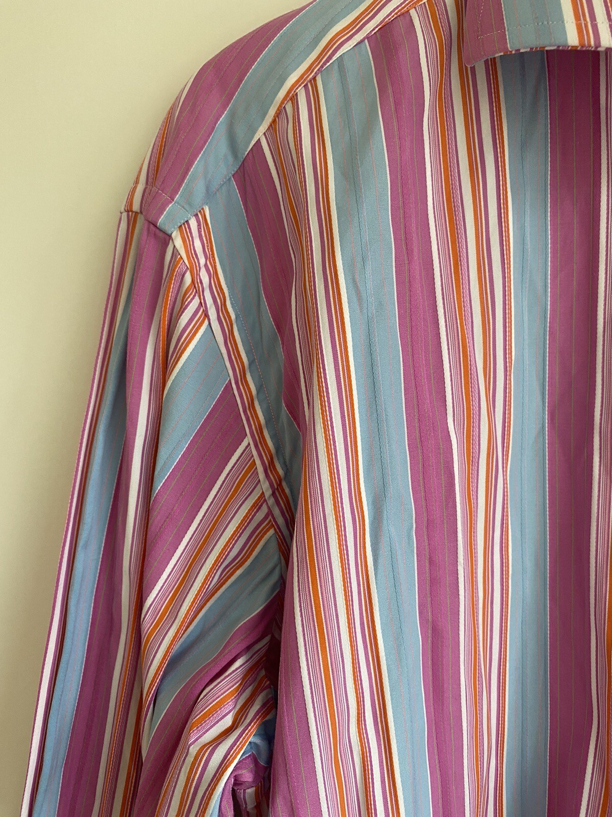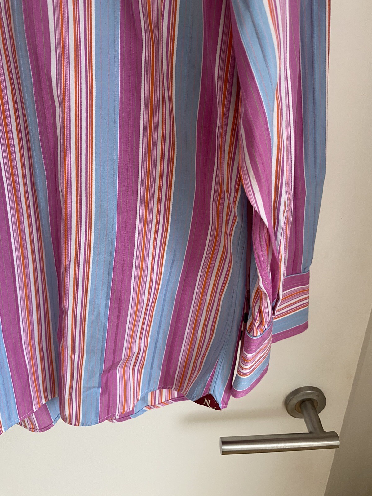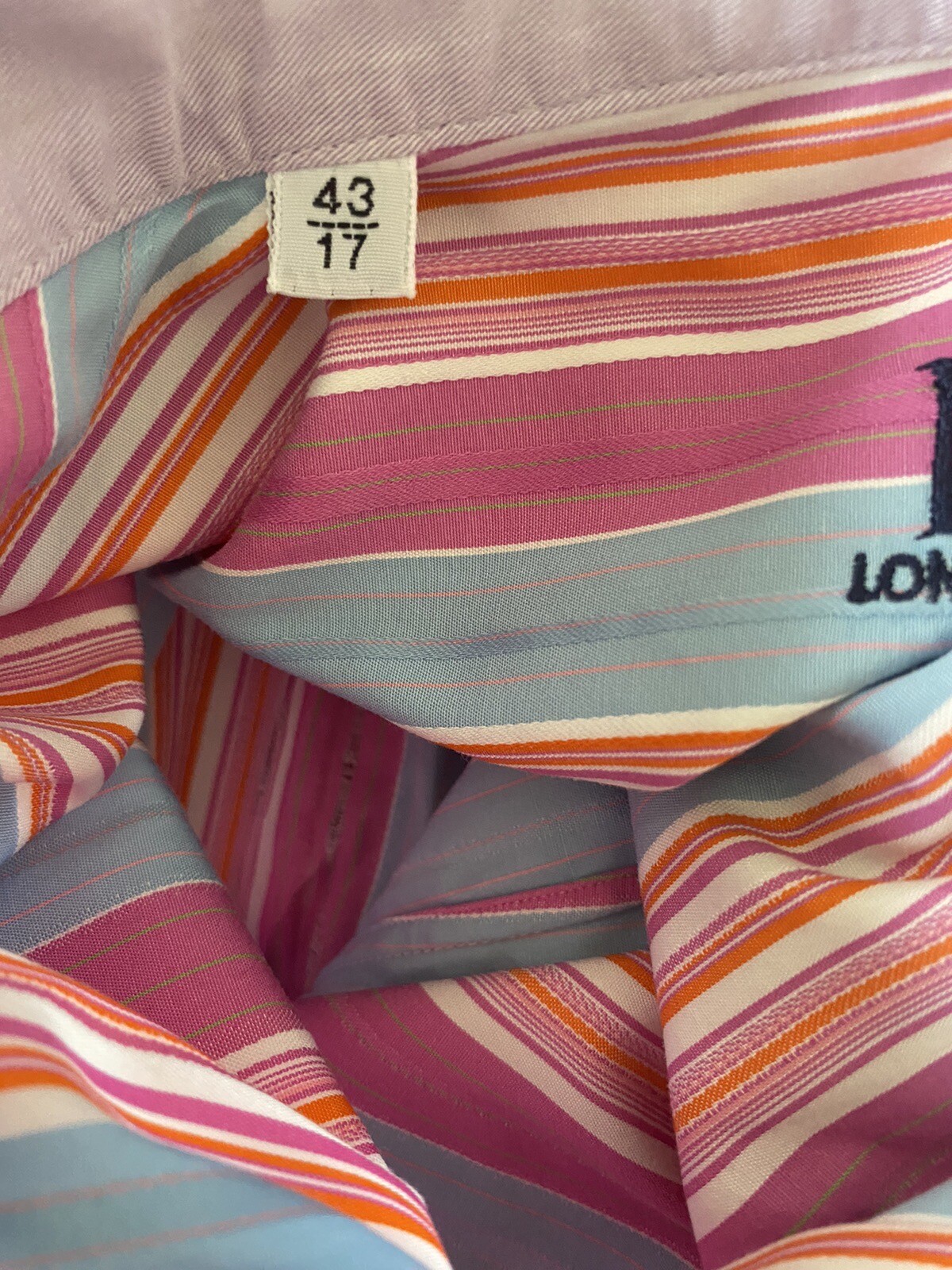 как выглядит Ninos Of London Men s Pink Blue Stripe Dress Shirt Size 17 Inch Collar Good Cond фото