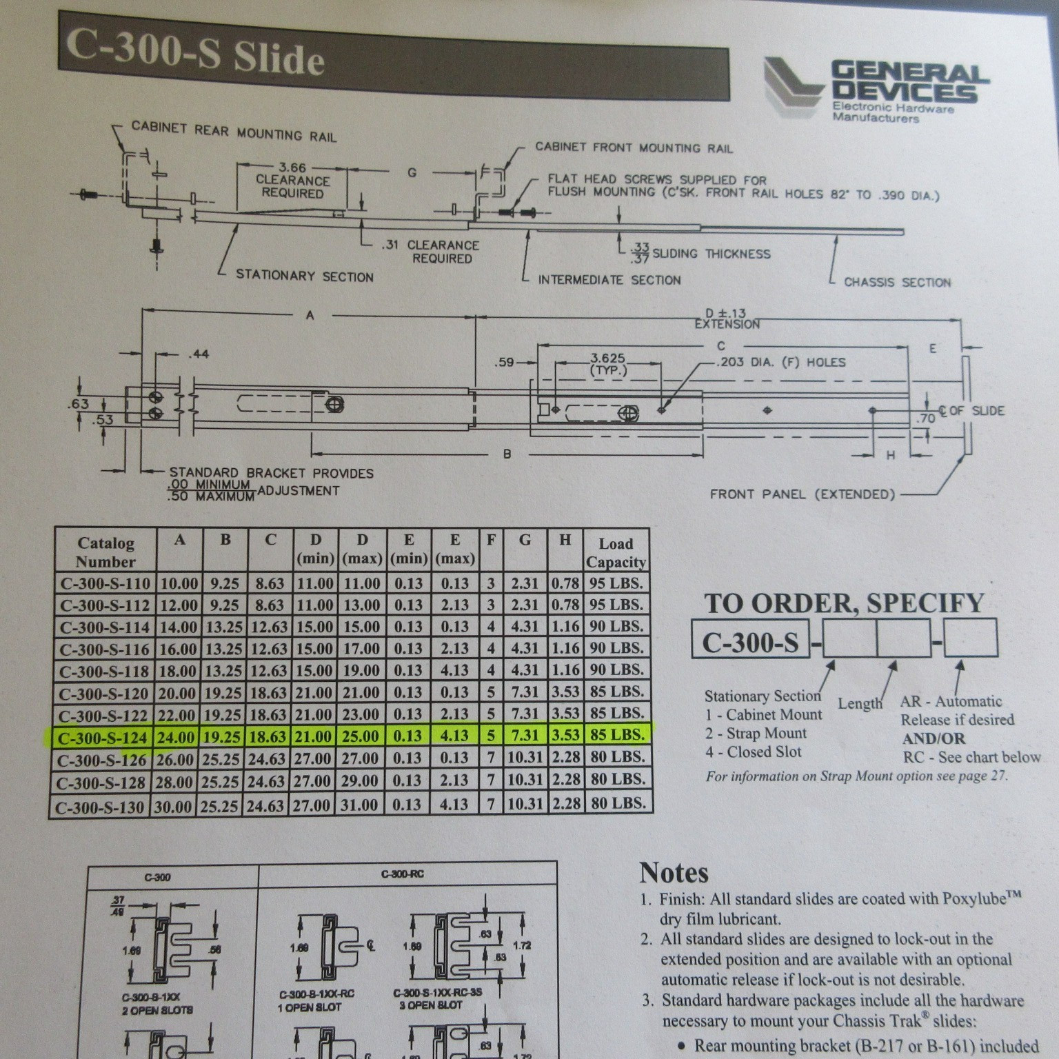 GENEREAL DEVICES C-300-S-124 CABINET SLIDE MOUNT 1 PAIR