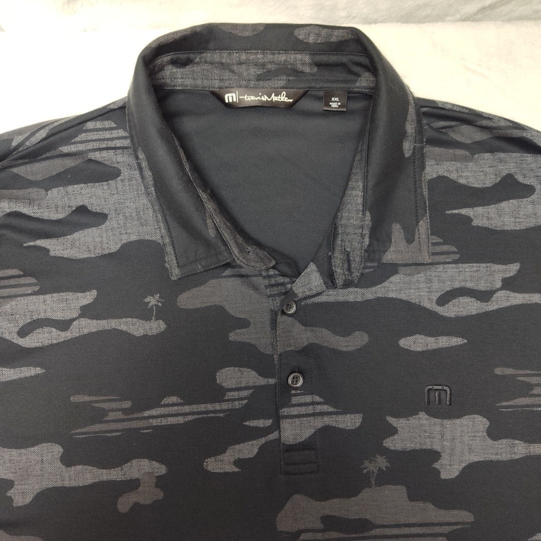 как выглядит Travis Mathew Polo Shirt Mens 2XL Black Camouflage Golf Pima Cotton Polyester фото
