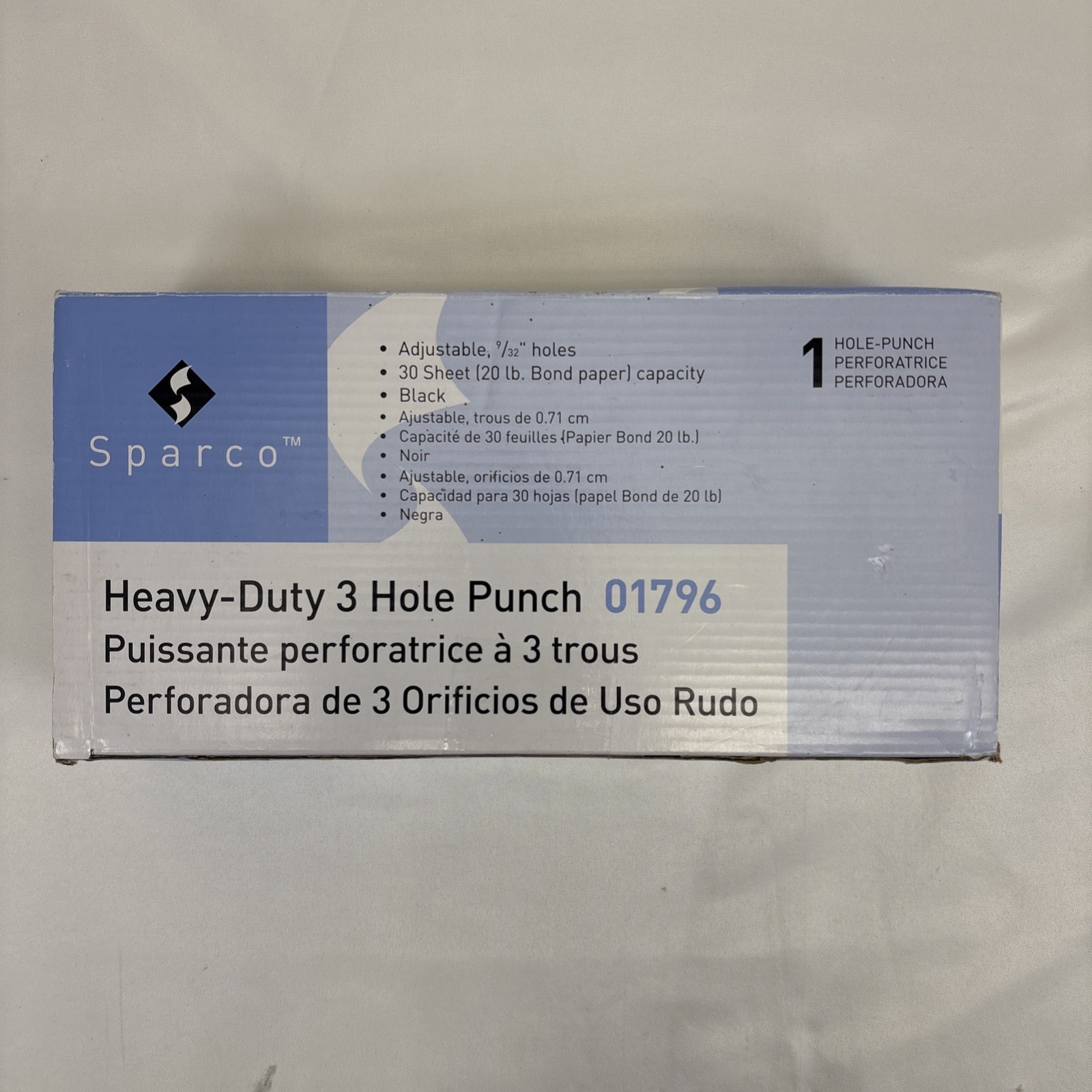 Sparco Heavy-Duty Adjustable 9/32 3-Hole Punch SPR01796 30 Sheets Black NIB