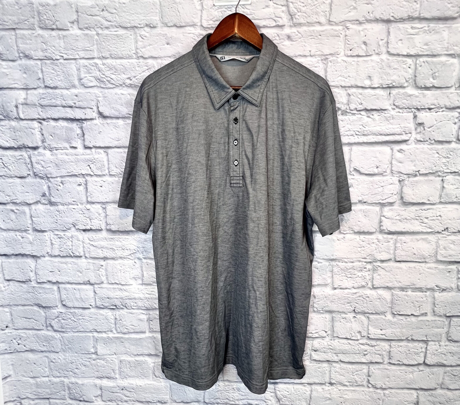 как выглядит Travis Mathew Mens Four Button Gray Short Sleeve Golf Polo Shirt Logo Size XL фото