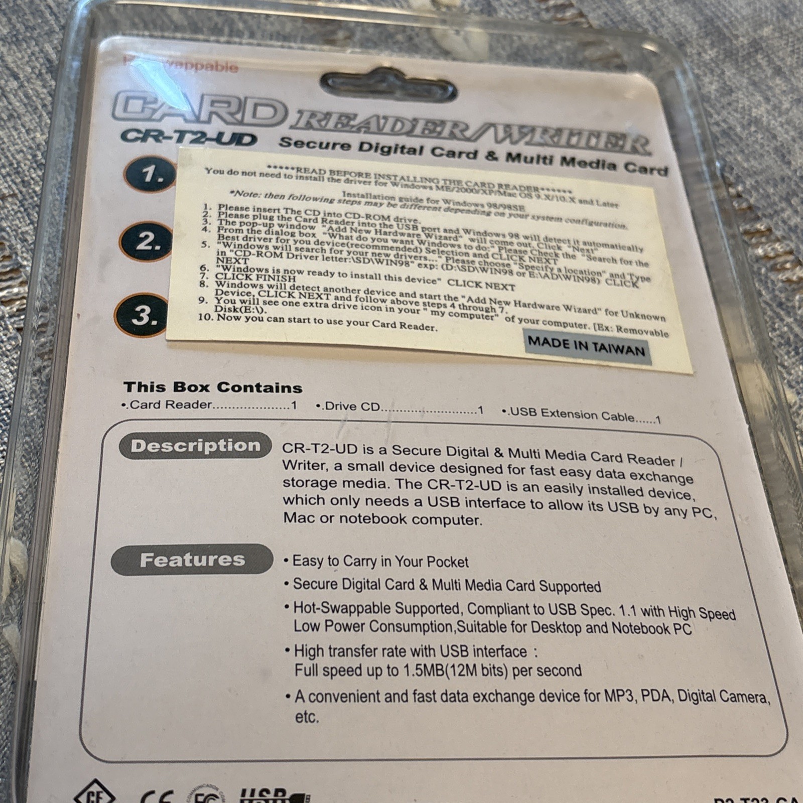 Secure Digital Hotswappable Card Reader/Writer Multi Media Card PC Mac CR-T2-UD