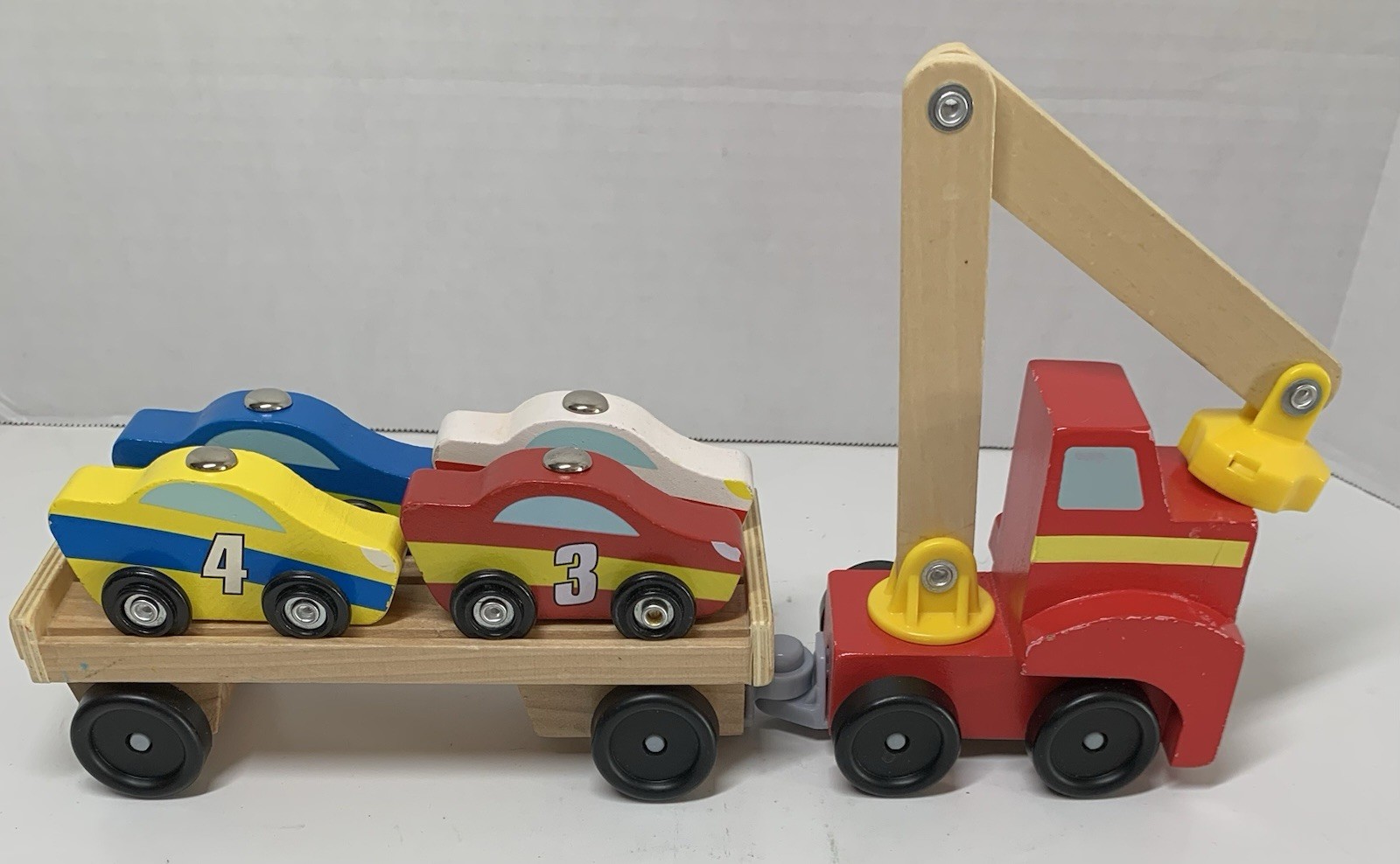 Lot 6 Melissa Doug Magnetic Car Loader Truck Trailer Hauler Race Car Wood Toy