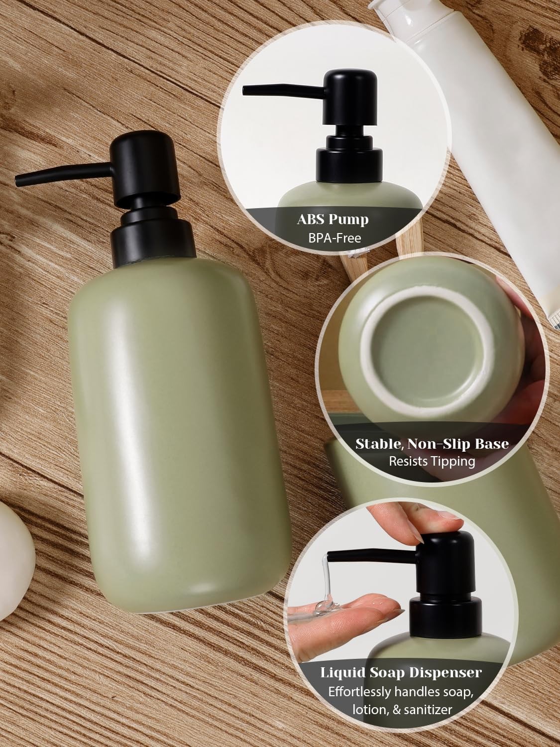 3 Pcs Ceramic Bathroom Accessory Set - Liquid Soap Dispenser, Toothbrush Hold...