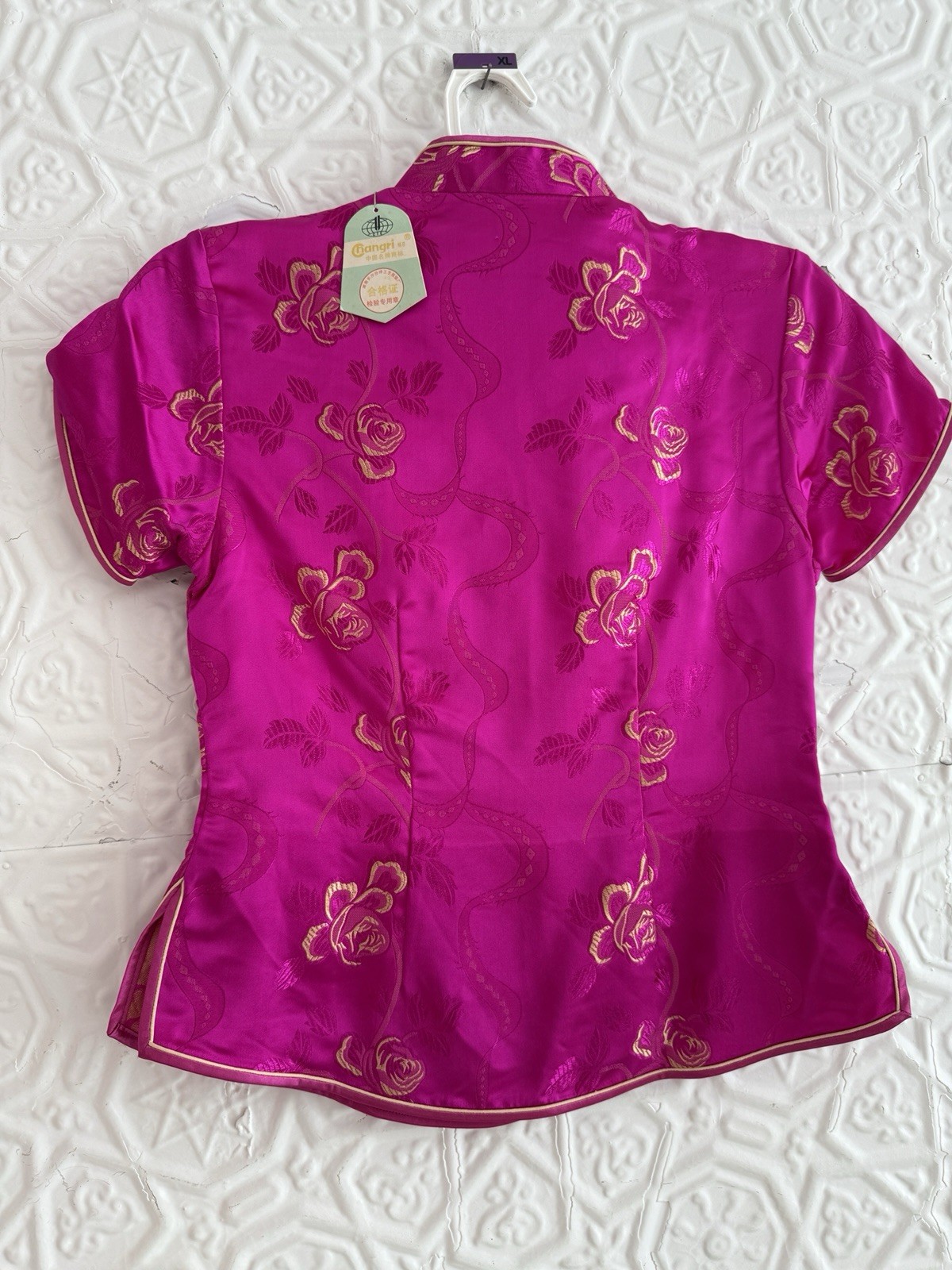 vintage silk chinese cheongsam top-Hot pink Gold Changri XS/Small NWT