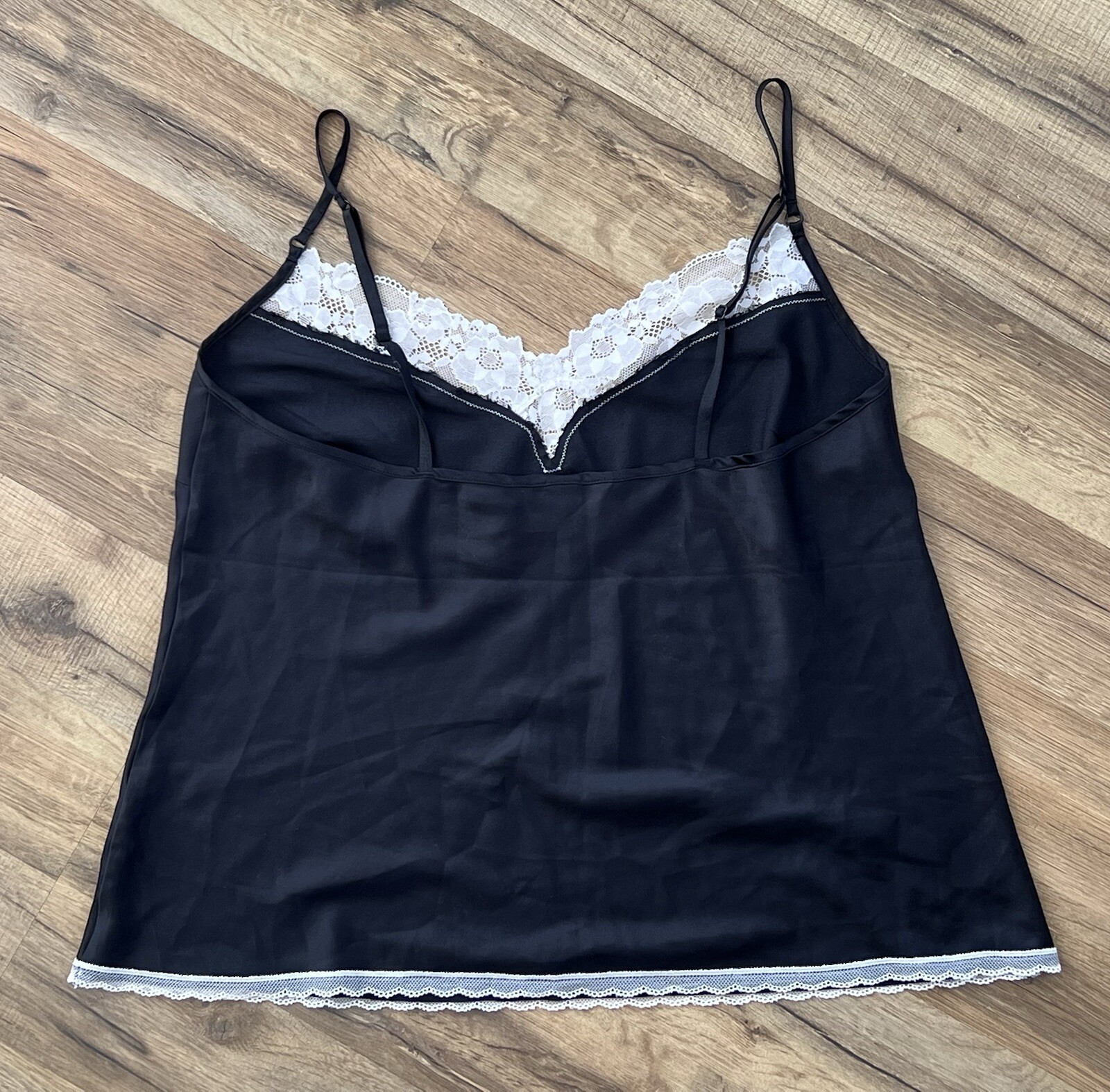 как выглядит Victoria Secret Silk Black Lace Camisole Tank Large Y2K фото
