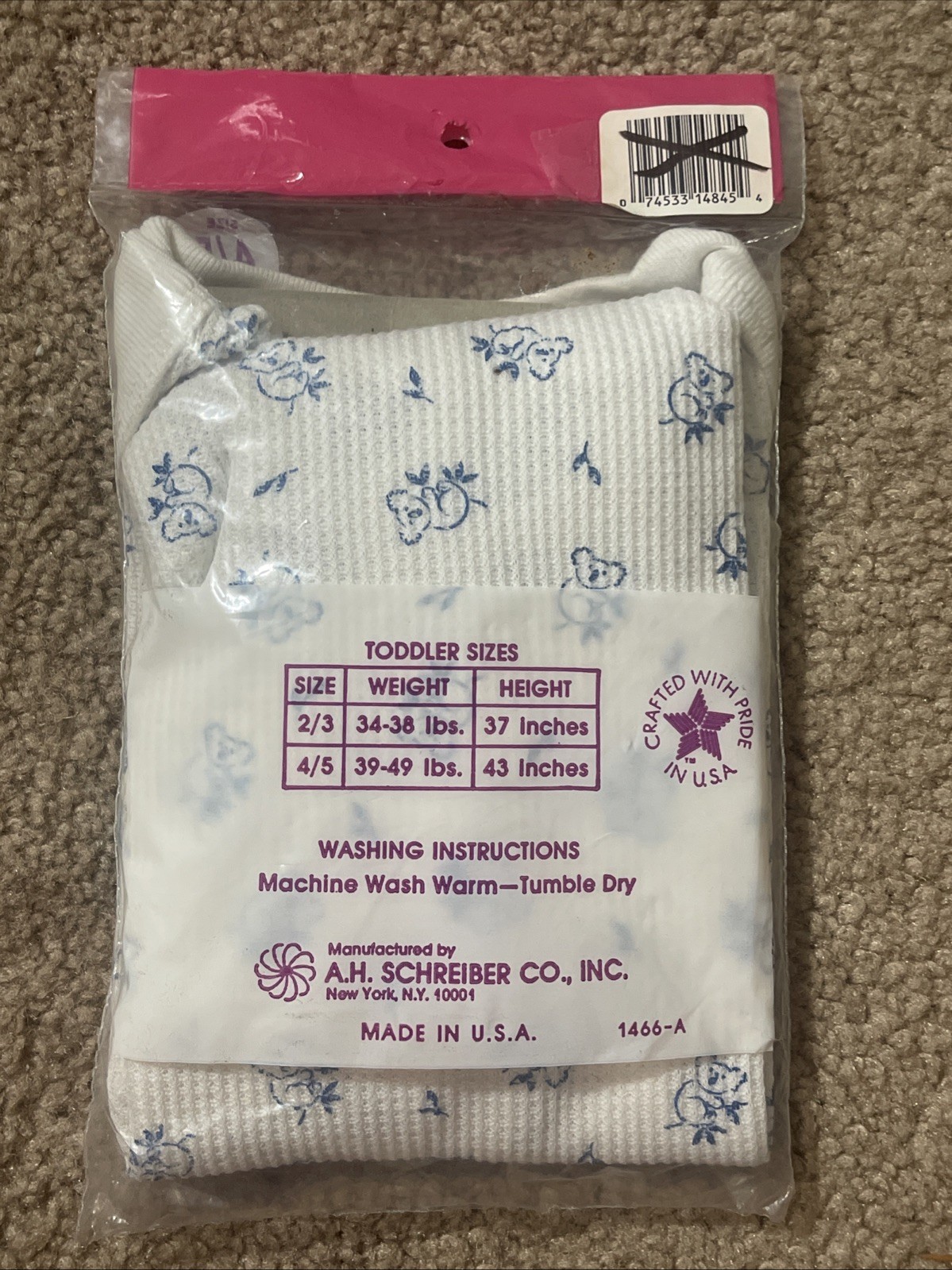 как выглядит Vintage Toddler Thermal Underwear Shirt 4/5 Sugar N Spice Koala Bears Deadstock фото