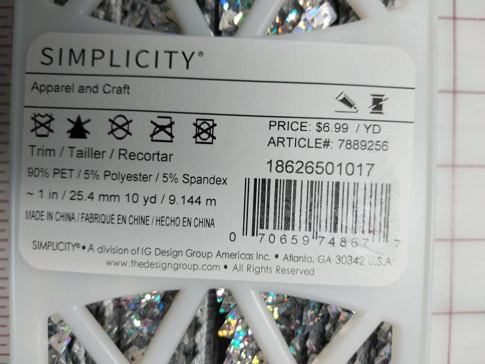 как выглядит 1" Silver 8 Row Stretch Metallic Square Sequin Trim, 10 yards Simplicity Sealed фото