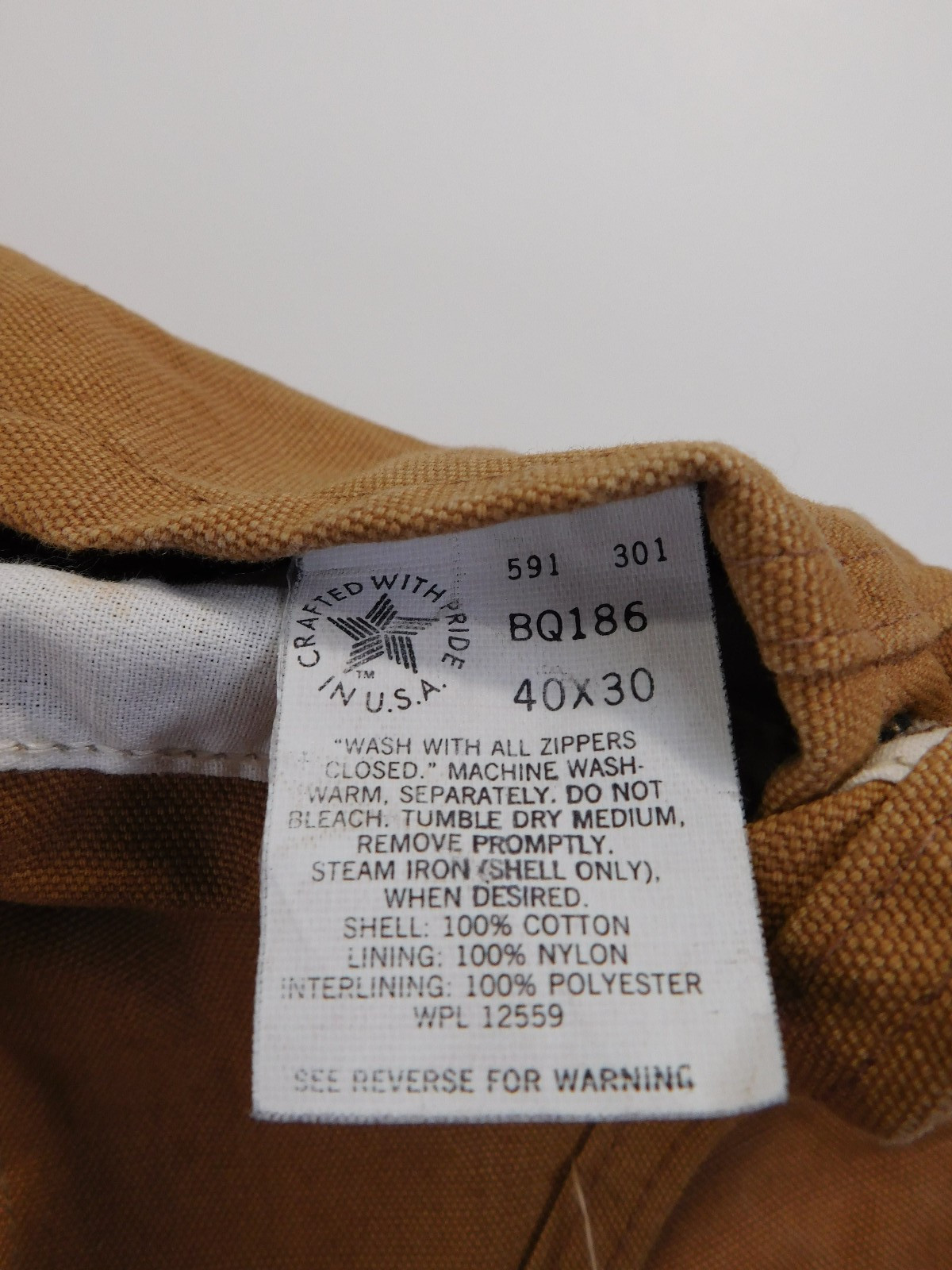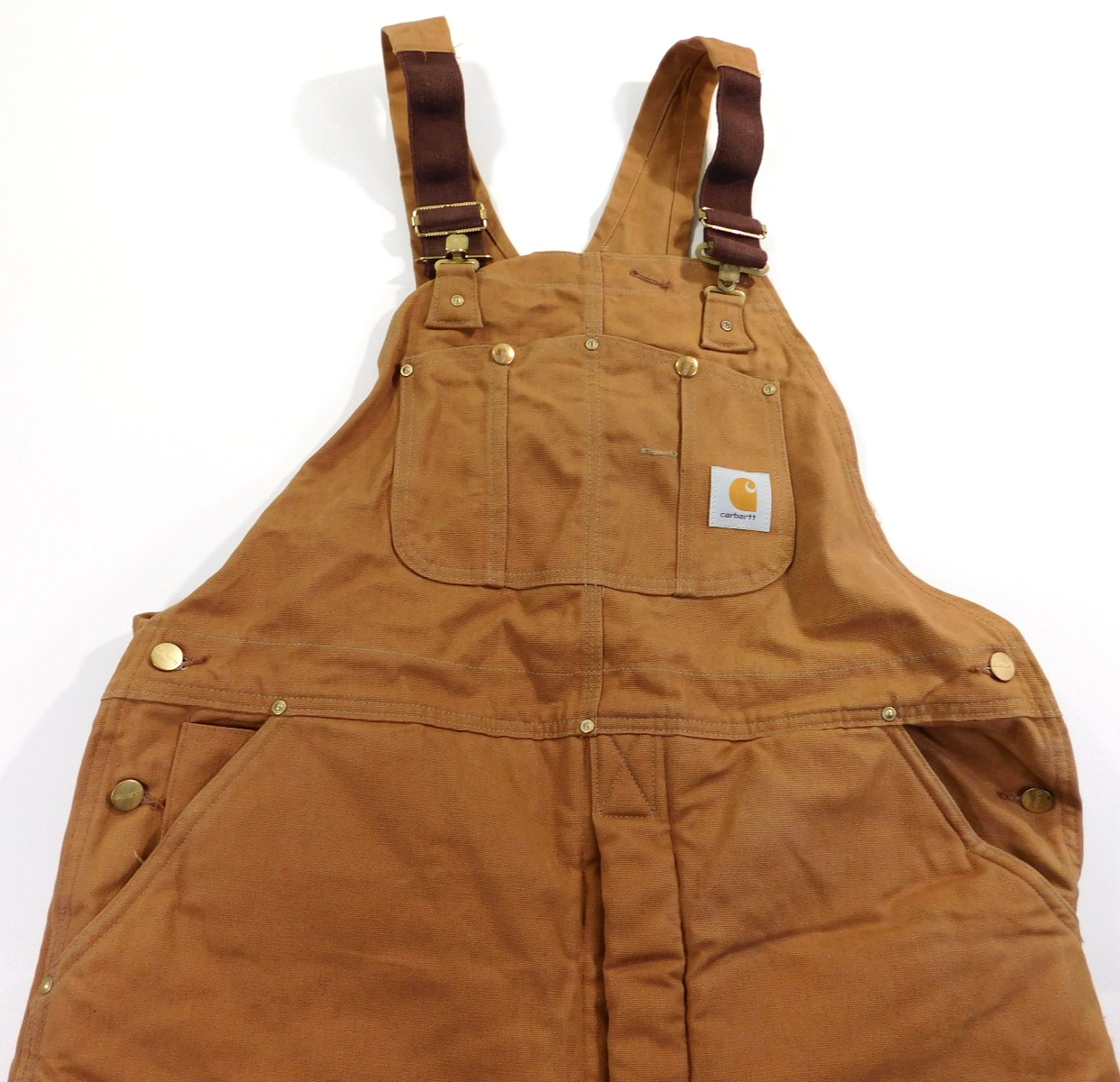 Vtg Carhartt Duck Brown Overalls Quilted Lined Double Knee BQ186 Size 40x30 USA